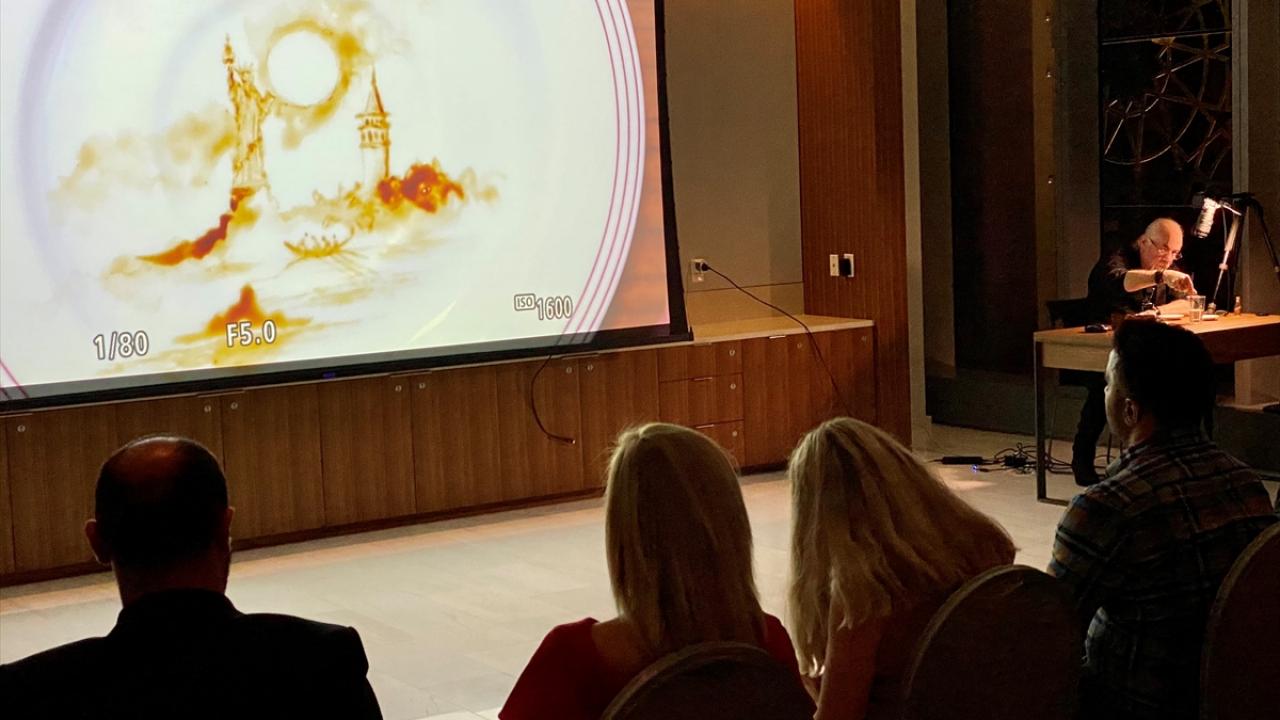 Mustafa Kemal Atatürk`ün kahve tutkusunun da konu edildiği belgeselde, Kale`nin kahve fincanı içine çizdiği Atatürk portresi en çok alkış alan sahne oldu.