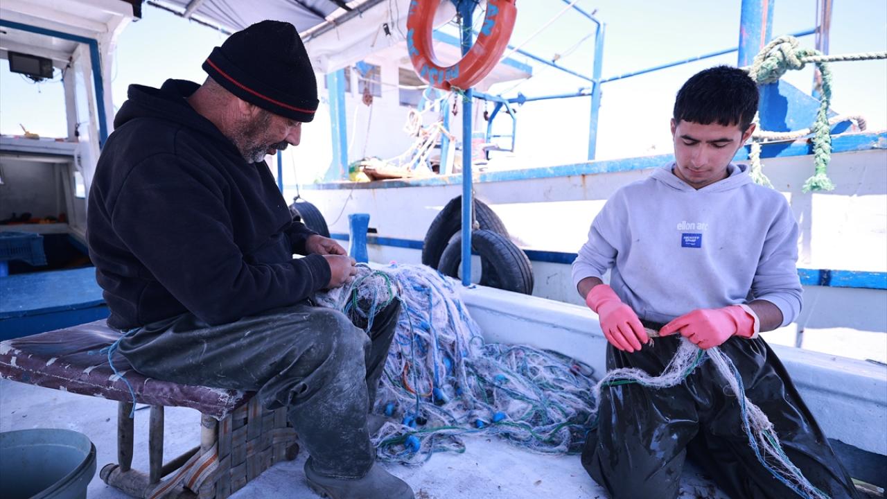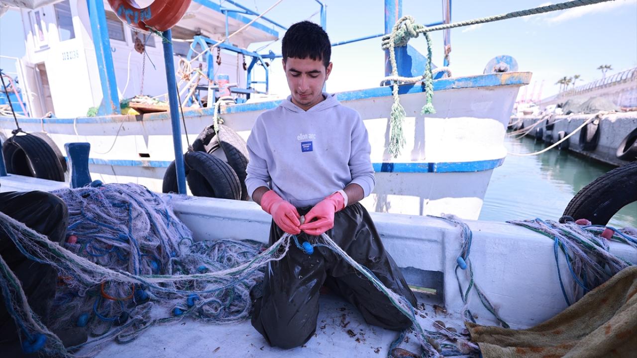 Yasakla beraber Mersin Balıkçı Barınağı`na teknelerini demirleyen balıkçılar, topladıkları ağların tamirini ve motorlarının bakımını yaptı.