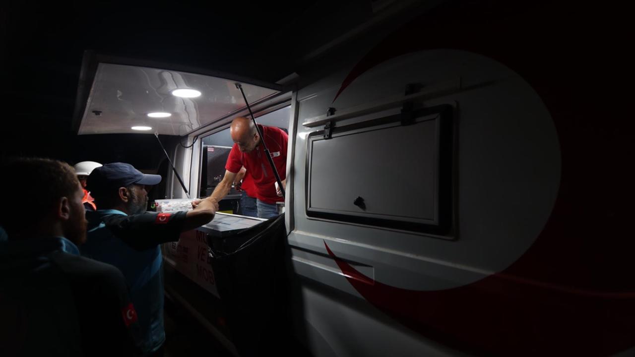 Açıklamada, Kızılayın bölgeye ulaştırdığı mobil beslenme aracıyla sıcak yemek verdiği kaydedildi.