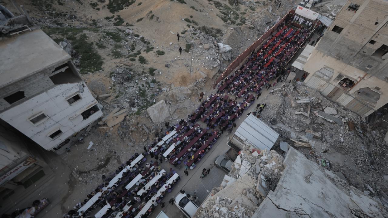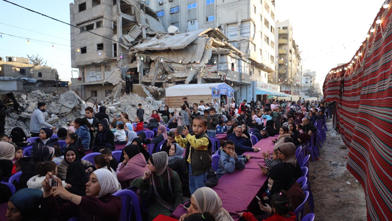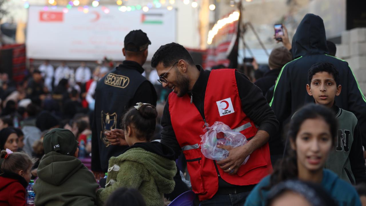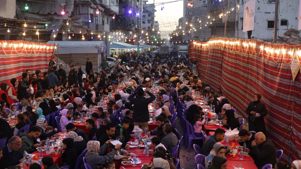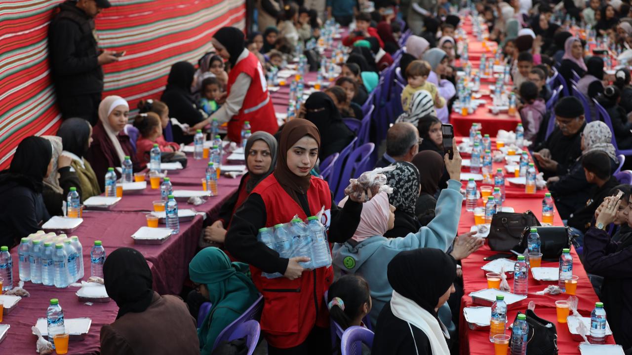 Türk Kızılay, ramazan ayında dayanışmayı artırmak amacıyla Gazze kentinin orta kesimindeki Yermuk bölgesinde yerinden edilen Filistinliler için toplu iftar programı düzenledi.