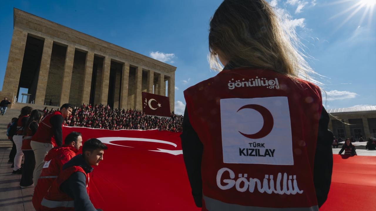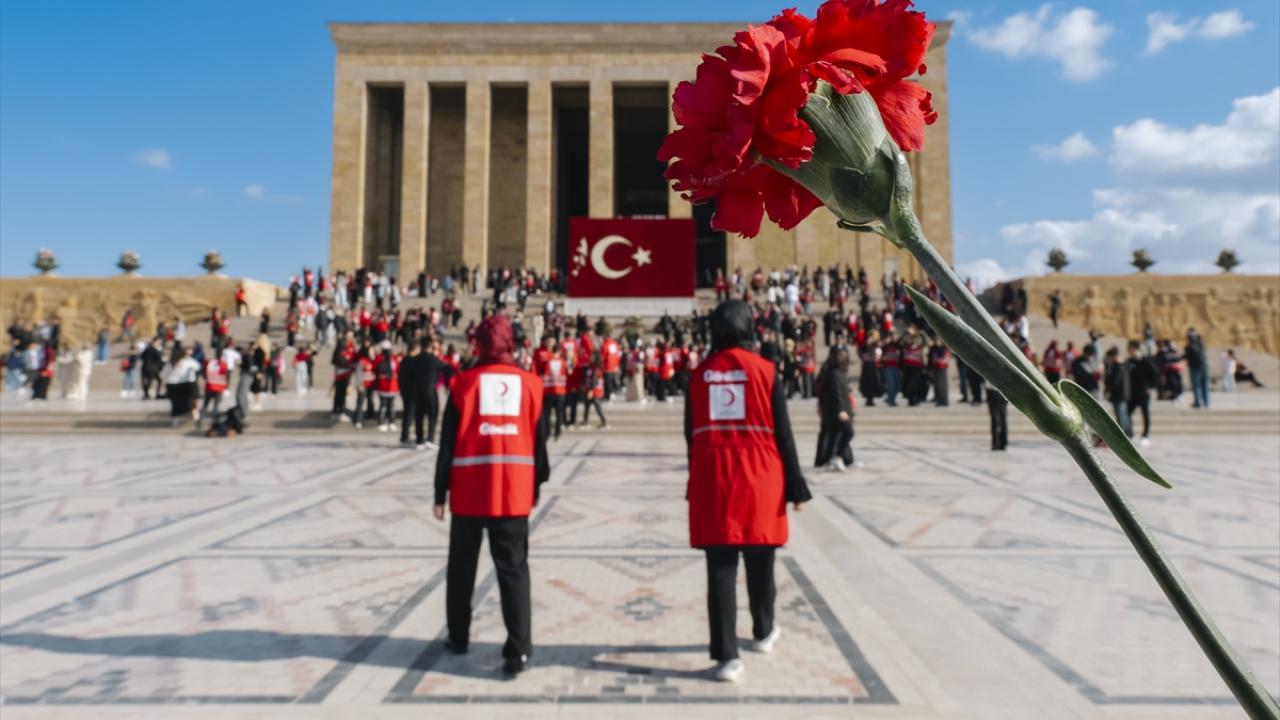 Kızılay gönüllüleri, Aslanlı Yol`dan yürüyerek Atatürk`ün mozolesine çelenk bıraktı ve saygı duruşunda bulundu.