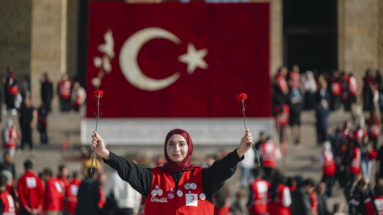 Türk Kızılay gönüllüleri Cumhuriyet'in 101'inci kuruluş yıl dönümünde Anıtkabir'i ziyaret etti.