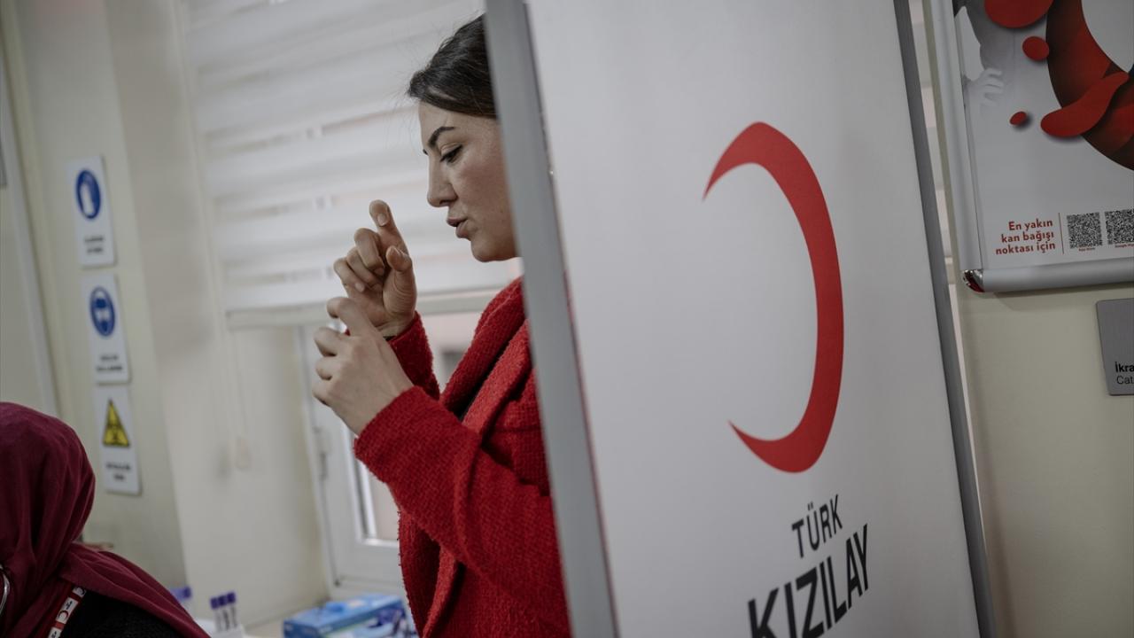 Türk Kızılay Orta Anadolu Bölge Kan Merkezinde gerçekleştirilen etkinlikte, işitme engelli vatandaşlar Aile ve Sosyal Hizmetler Bakanlığında görev yapan işitme engelli tercümanların eşliğinde kan bağışında bulundu.