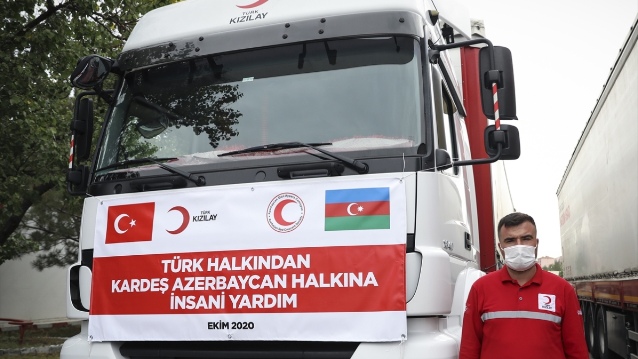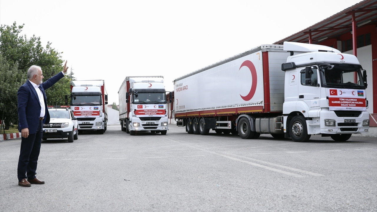 Türk Kızılayın, Dağlık Karabağ bölgesindeki çatışmalardan etkilenen bölge halkına ulaştırılmak üzere Azerbaycan'a acil insani yardım malzemesi taşıyan konvoyu yola çıktı.