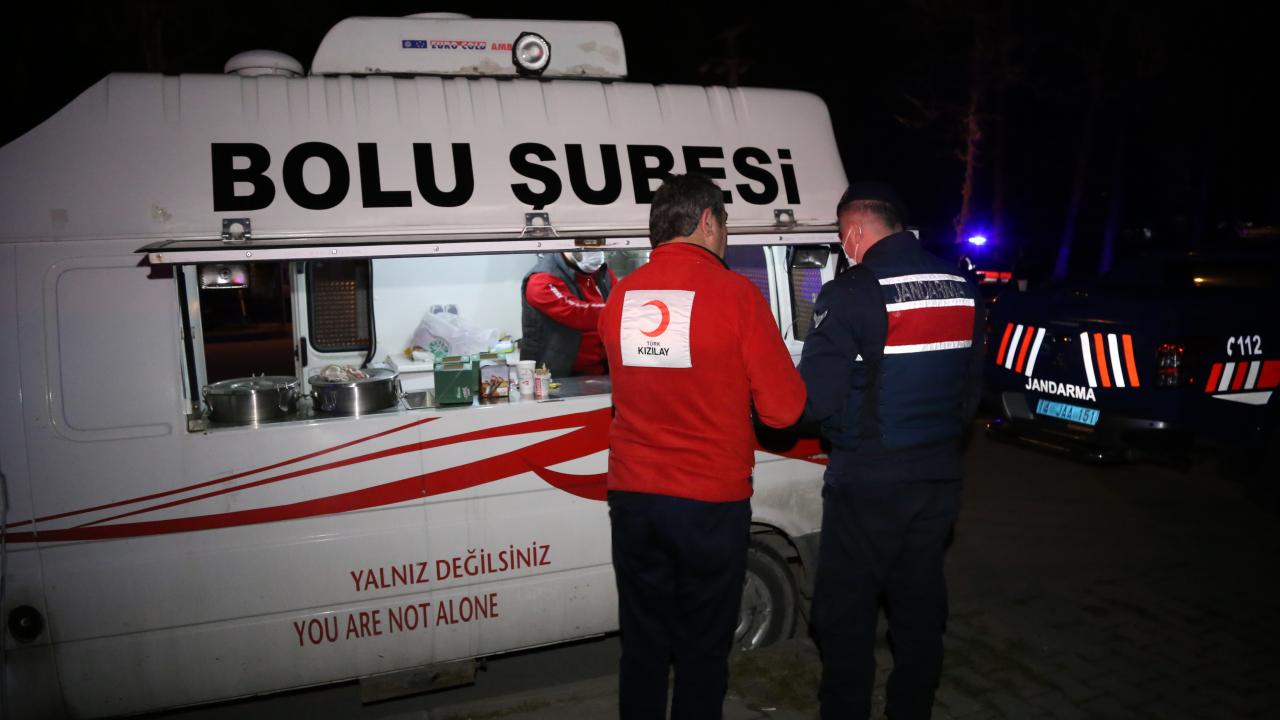 Türk Kızılayı Bolu Afet Depo Sorumlusu Tuncay Özay, soğuk kış akşamında mesaide olan görevlilerin içini ısıtmak için ikramda bulunduklarını söyledi.