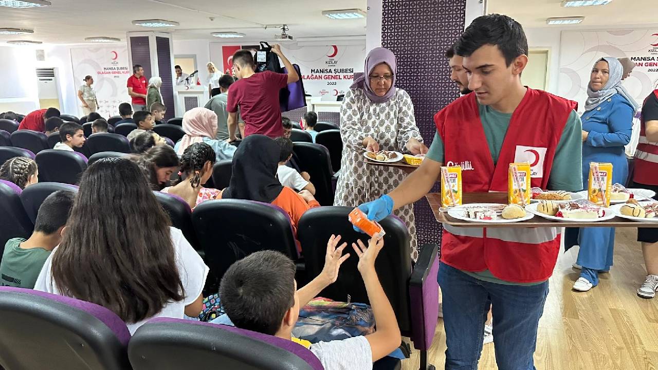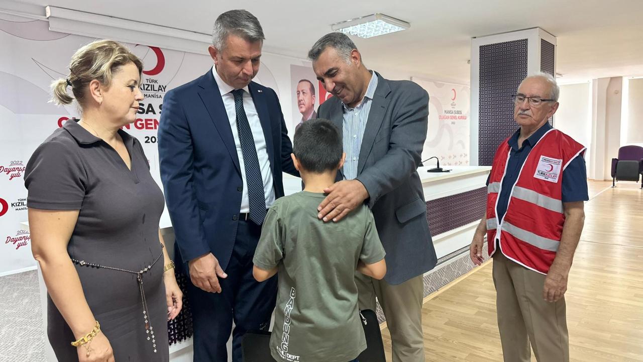 Konuşmaların ardından, Manisa Vali Yardımcısı Mustafa Harputlu, Manisa Aile ve Sosyal Hizmetler İl Müdürü Mustafa Kılıç ve Türk Kızılayı Manisa İl Merkezi Başkanı Öner Gürsel tarafından öğrencilere kırtasiye malzemeleri dağıtılırken, Türk Kızılayı Gönüllüleri de öğrencilere pasta ve meyve suyu ikram etti.