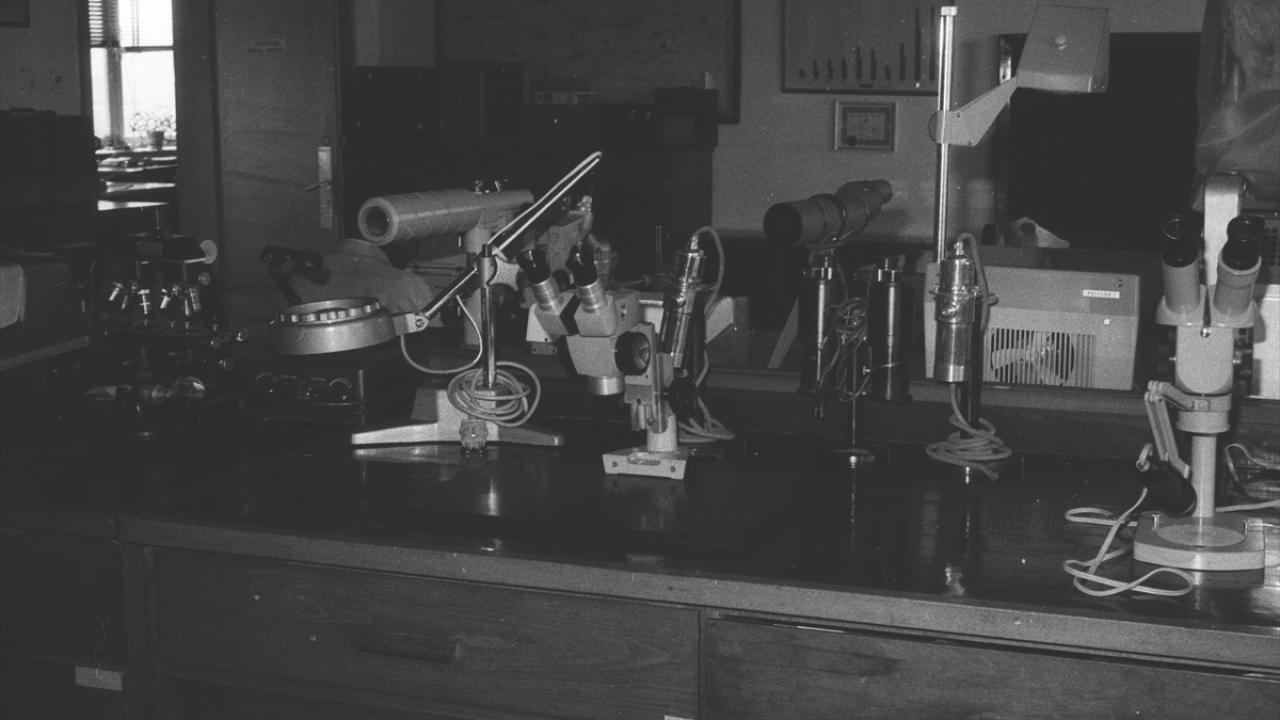 1970`li yıllarda Polis Kriminal Laboratuvarları`nda inceleme yapan çalışanlar.