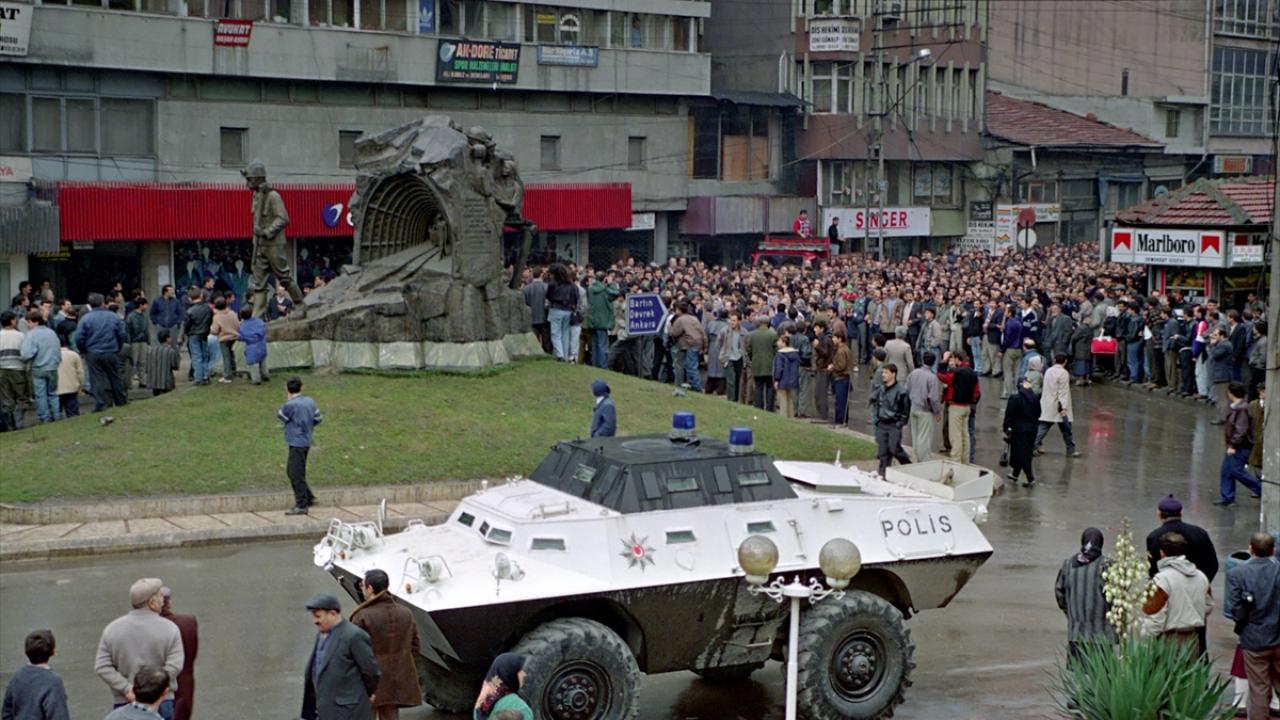 Zonguldak`ta 1990`da düzenlenen eylemde güvenliği sağlayan panzer.