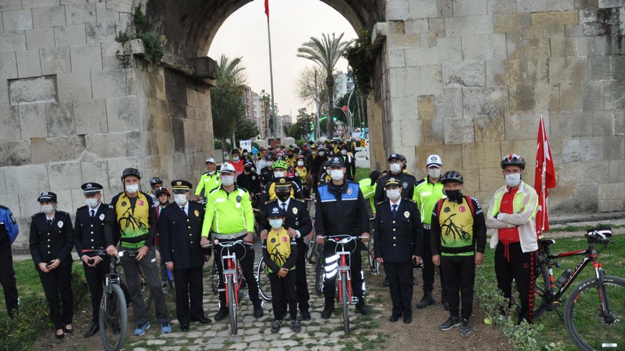 Tarsus'ta, Türk Polis Teşkilatının 176. kuruluş yıl dönümü dolayısıyla bisiklet turu düzenlendi.