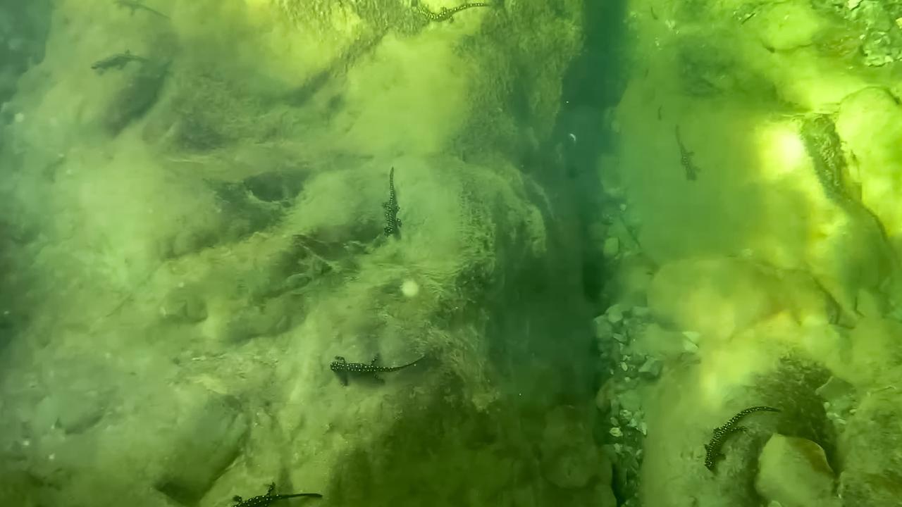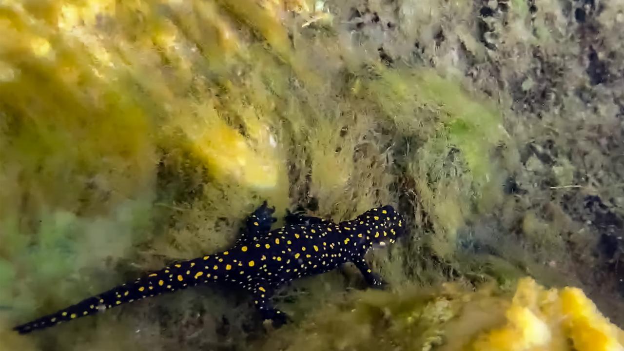 Diyarbakır'ın Hani ilçesinde nesli tükenme tehlikesi altındaki "Türk semenderi" olarak bilinen sarı benekli semenderlerin yüzlercesi su altında görüntülendi.