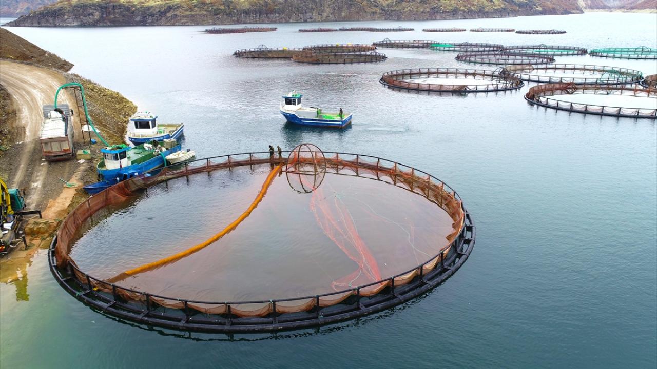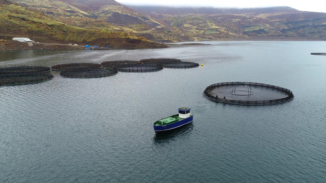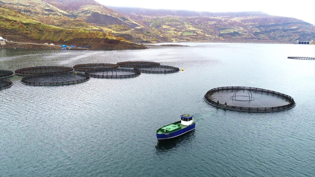 Sivas`ın Suşehri ilçesindeki Çamlıgöze Baraj Gölü`nde bir firma, yılda 3-4 bin ton alabalık yetiştiriyor.