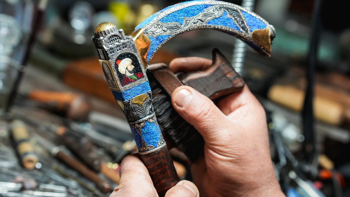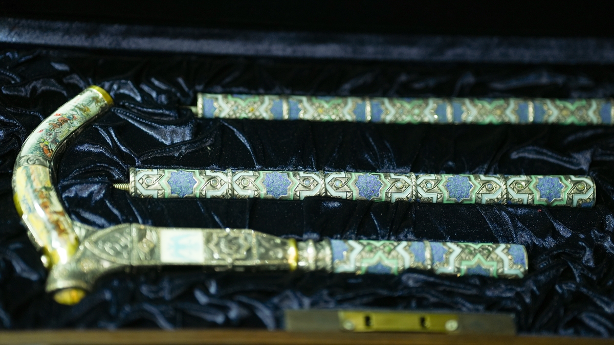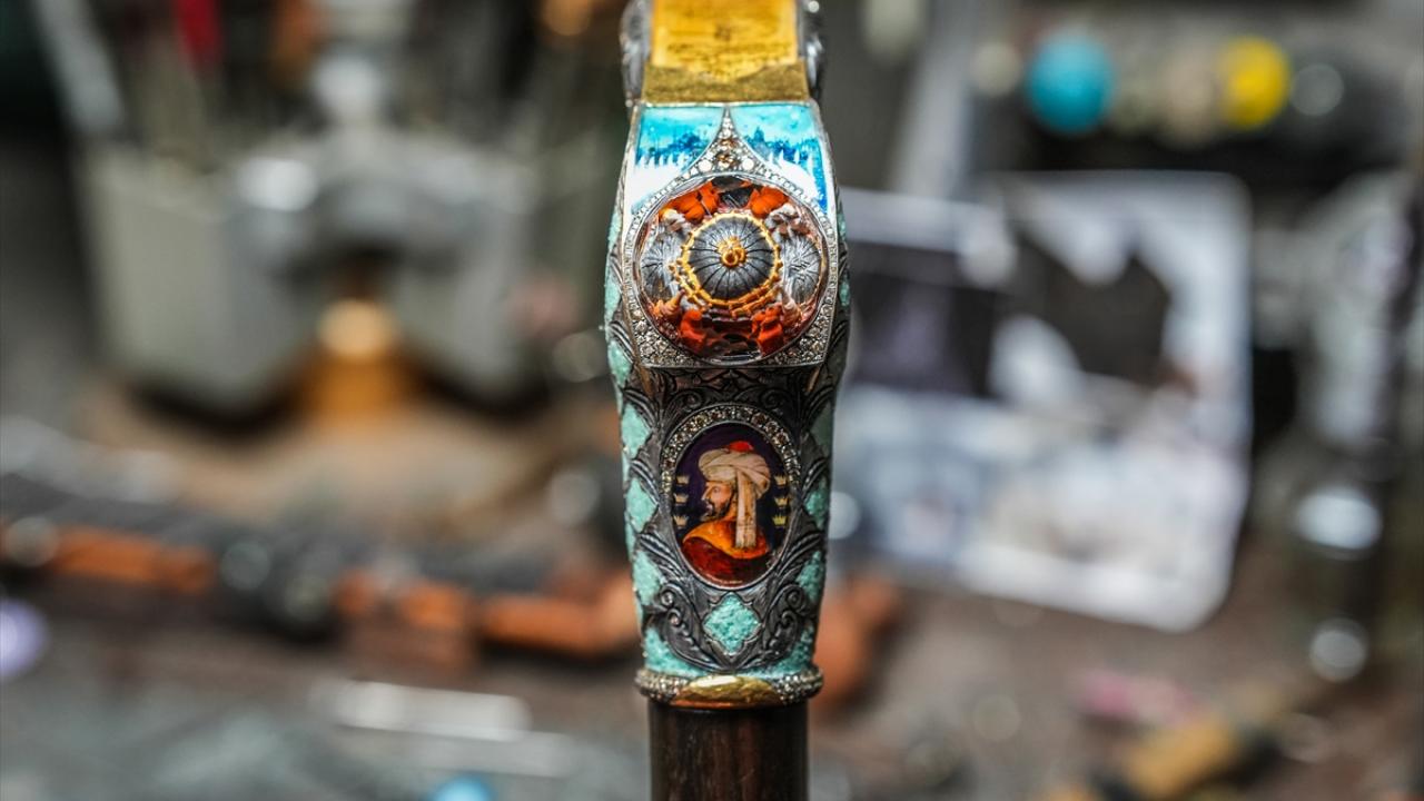 Bastonlarda değerli taşların içine Ayasofya-i Kebir Cami-i Şerifi ile Fatih Sultan Mehmet Han`ın mikro çalışmasının da resimlendirildiğini vurgulayan Karaman, "Gümüşten tutun da altın, pırlanta, mozaik bastonların üzerinde var. Eserlerin üzerine mine, mıhlama tekniği, kalem atma tekniği dediğimiz gravür çalışması, kendi alanım olan kakma, kabartma tekniğini uyguladık." ifadesini kullandı.