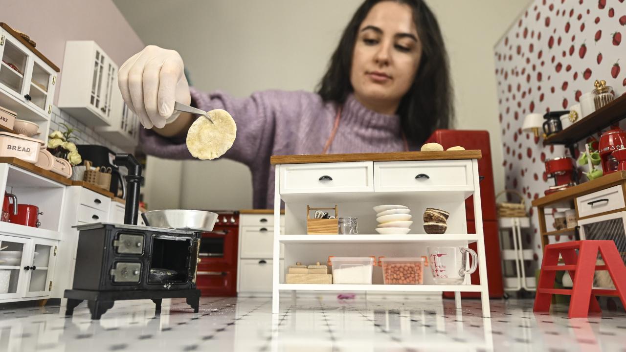 Evinde kendi imkanlarıyla mini mutfak kuran Tuğçe Ünveren'in Türk ve dünya lezzetlerinden hazırladığı minyatür yemekler, hem görsel sunumları hem de boyutlarıyla ilgi çekiyor.