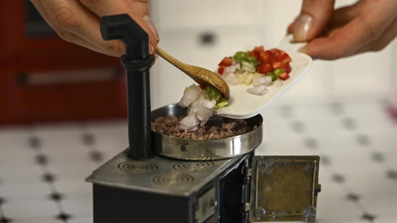Mutfakta minik ürünlerle yemek hazırlamanın zaman aldığına ve büyük bir dikkat gerektirdiğine işaret eden Ünveren, "Ürünler ve eşyalar minik olduğu için daha uzun sürüyor. Çok dikkatli doğramak gerekiyor. Metal kuzinemizde sıvı jel kullanıyoruz. Çok güçlü olduğu için koyduğumuz yemekler anında yanabiliyor. Bazı yiyecekleri de normal fırında, dikkatle pişiriyoruz. Yemeklerin lezzetleri çok güzel oluyor. Küçük yemekler olduğu için tadı damağımızda kalıyor" ifadelerini kullandı.