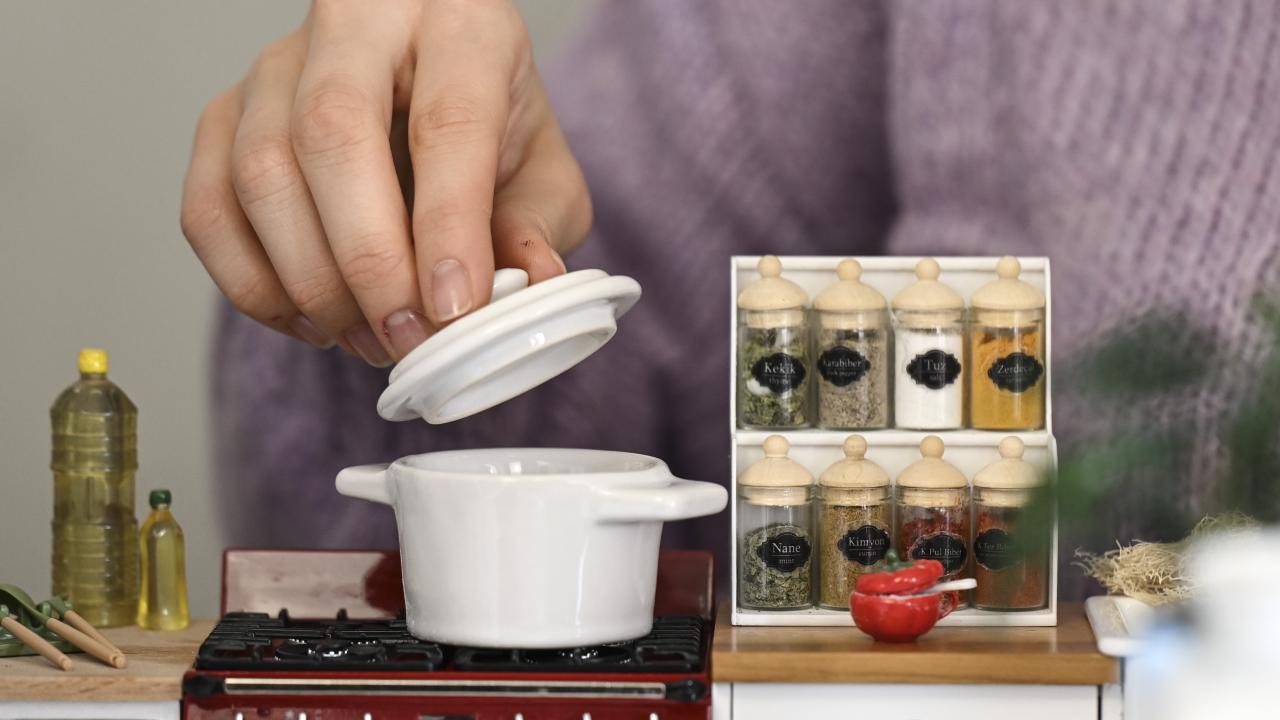 Süzgeçten, rendeye, şekerlikten baharatlığa, minik sebze ve meyvelerden ekmek kutularına kadar eksiksiz bir alan oluşturan Ünveren, "Minimela Mutfak" adını verdiği mutfağında Türk ve dünya lezzetlerini minyatür ölçekte aslına uygun hazırlamaya başladı.