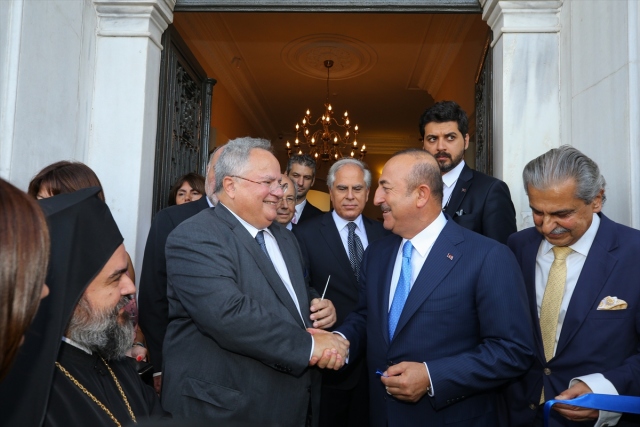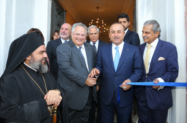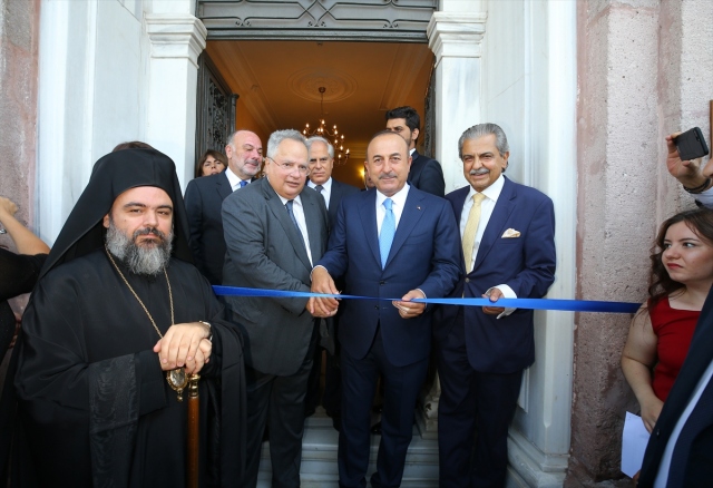 Dışişleri Bakanı Mevlüt Çavuşoğlu ile Yunanistan Dışişleri Bakanı Nikos Kocias, Yunanistan’ın yenilenen İzmir Başkonsolosluğu binasının açılış törenine katıldı.