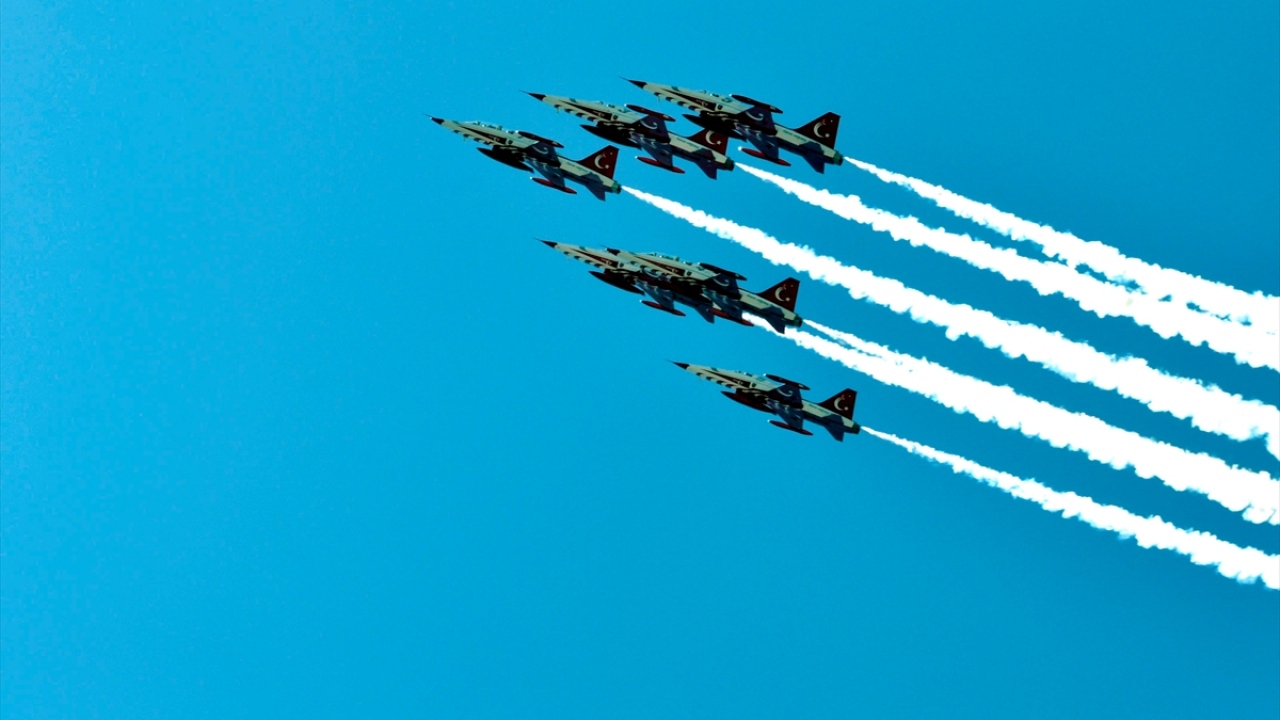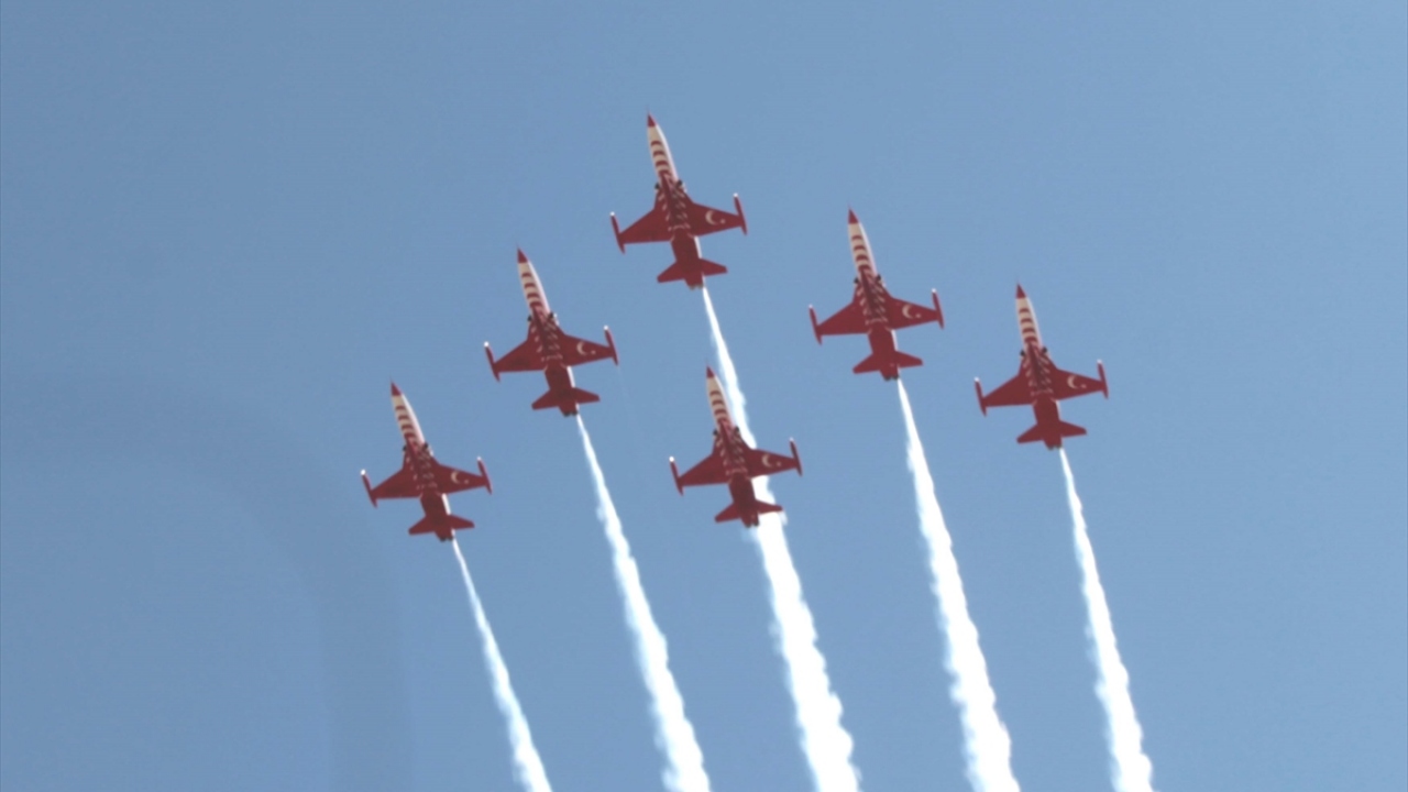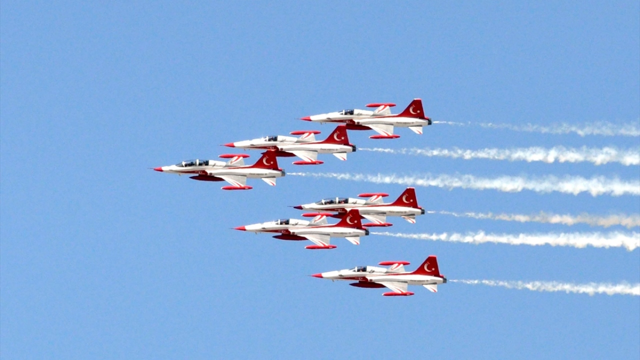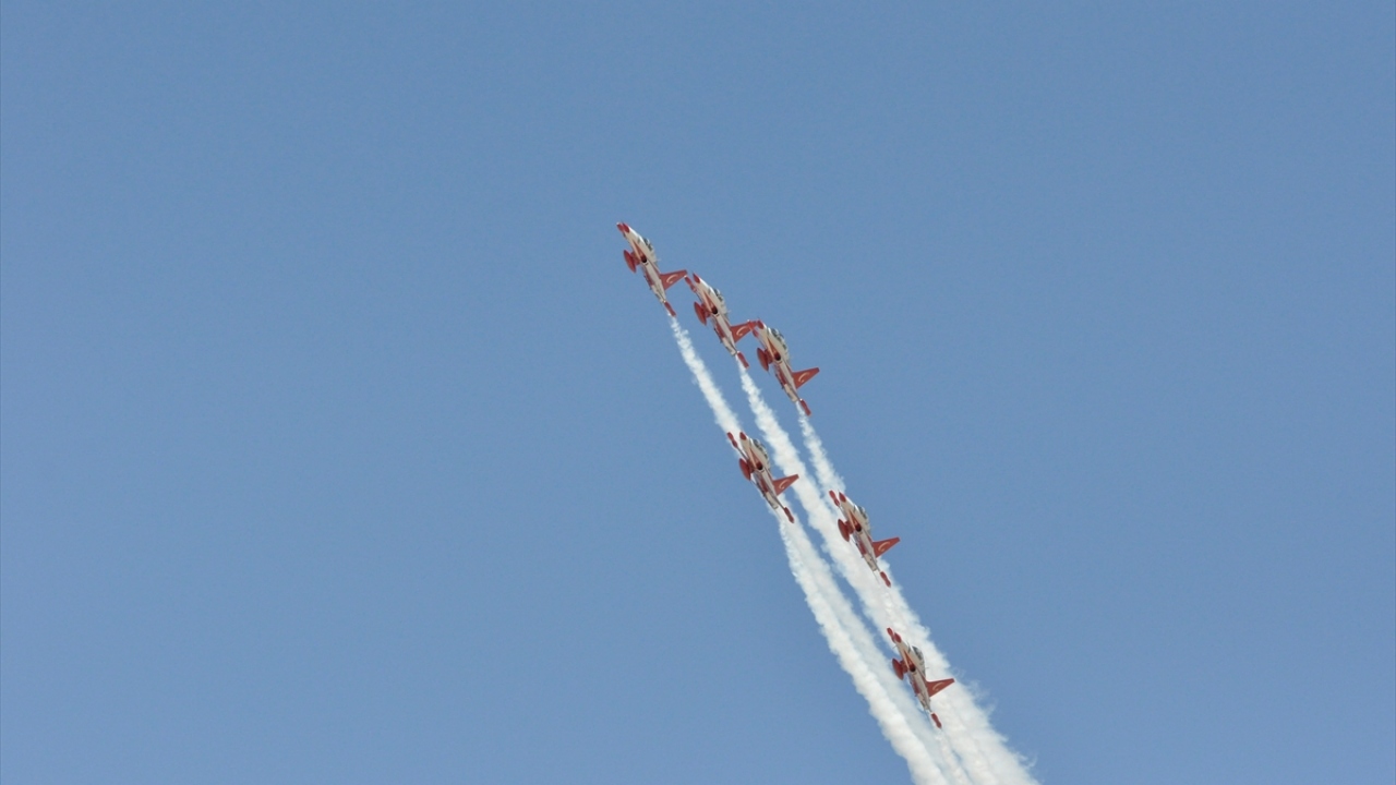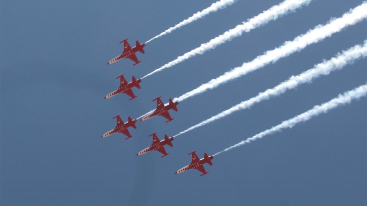 Dünyada 8 süpersonik uçakla gösteri yapan tek akrobasi timi olan Türk Yıldızları, manevralarıyla izleyenlerin beğenisini topladı.