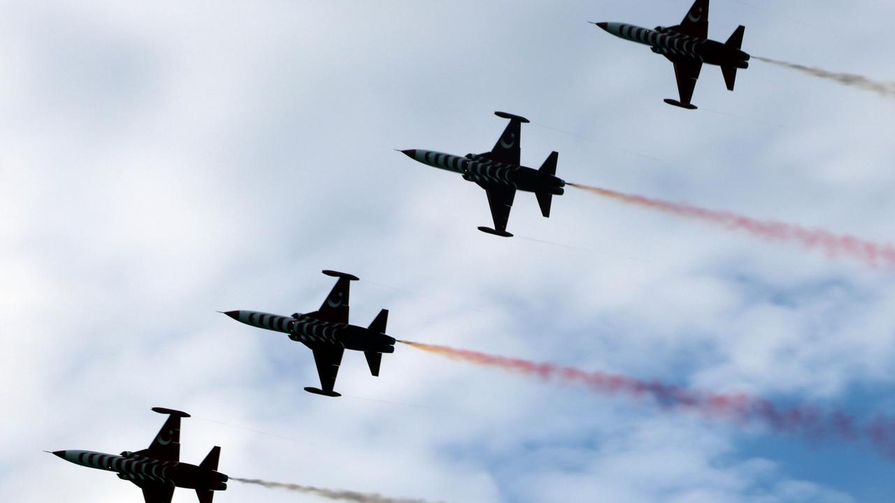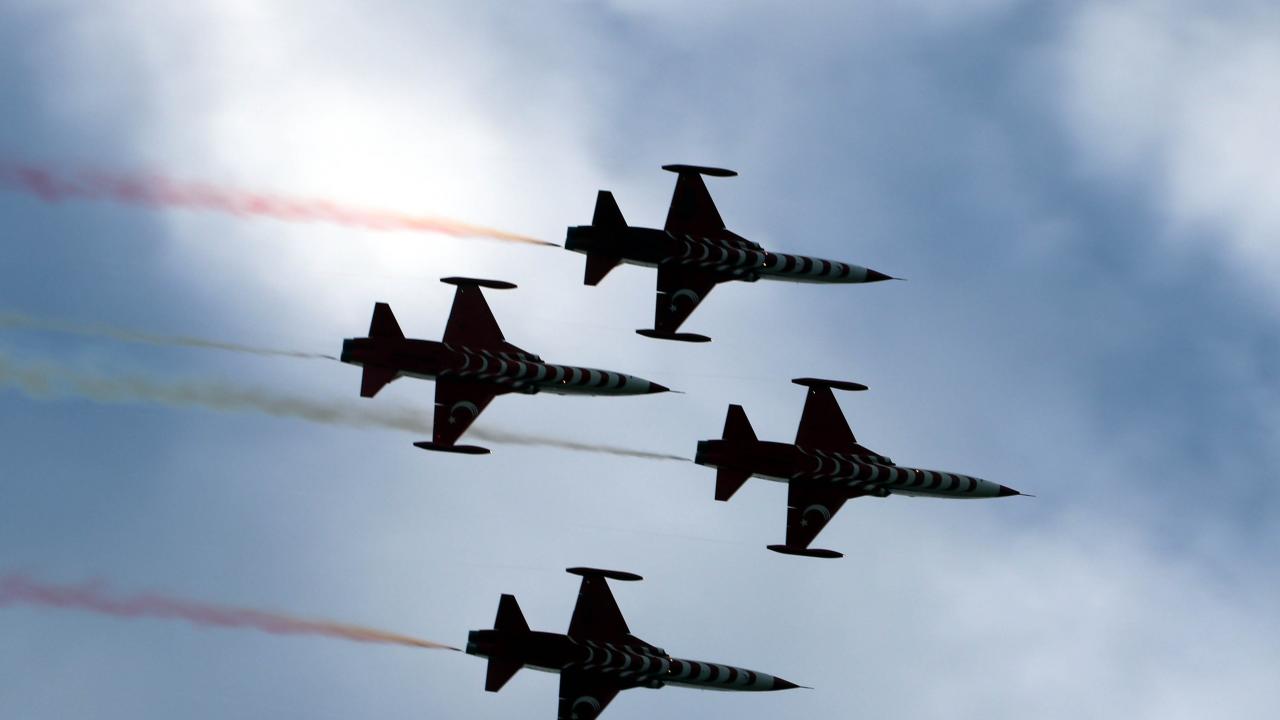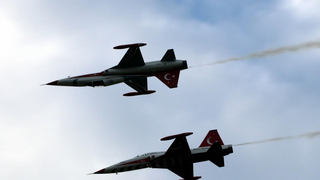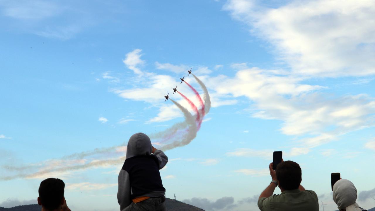 İlçe sakinleri, Alparslan Türkeş Caddesi`nde cep telefonu kameralarıyla gösteri uçuşunu kaydetti. Yaklaşık 20 dakika havada kalan tim, daha sonra kent semalarından ayrıldı.
