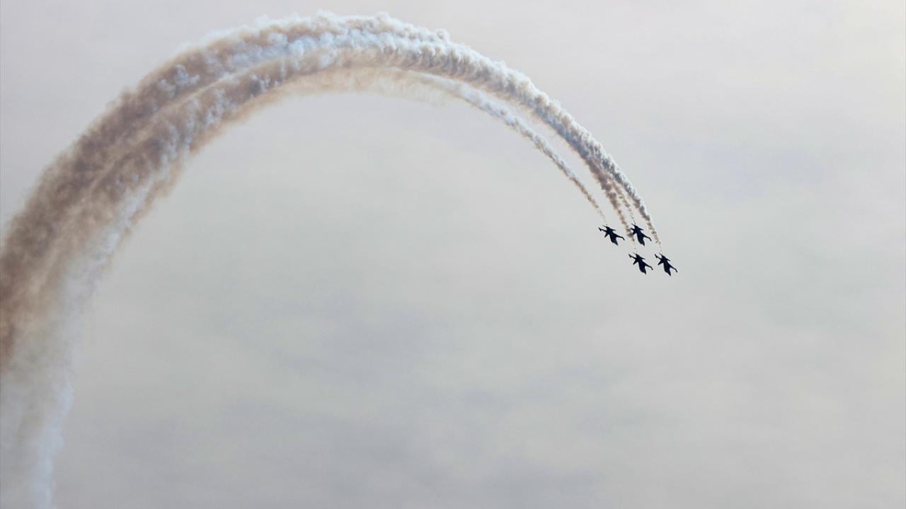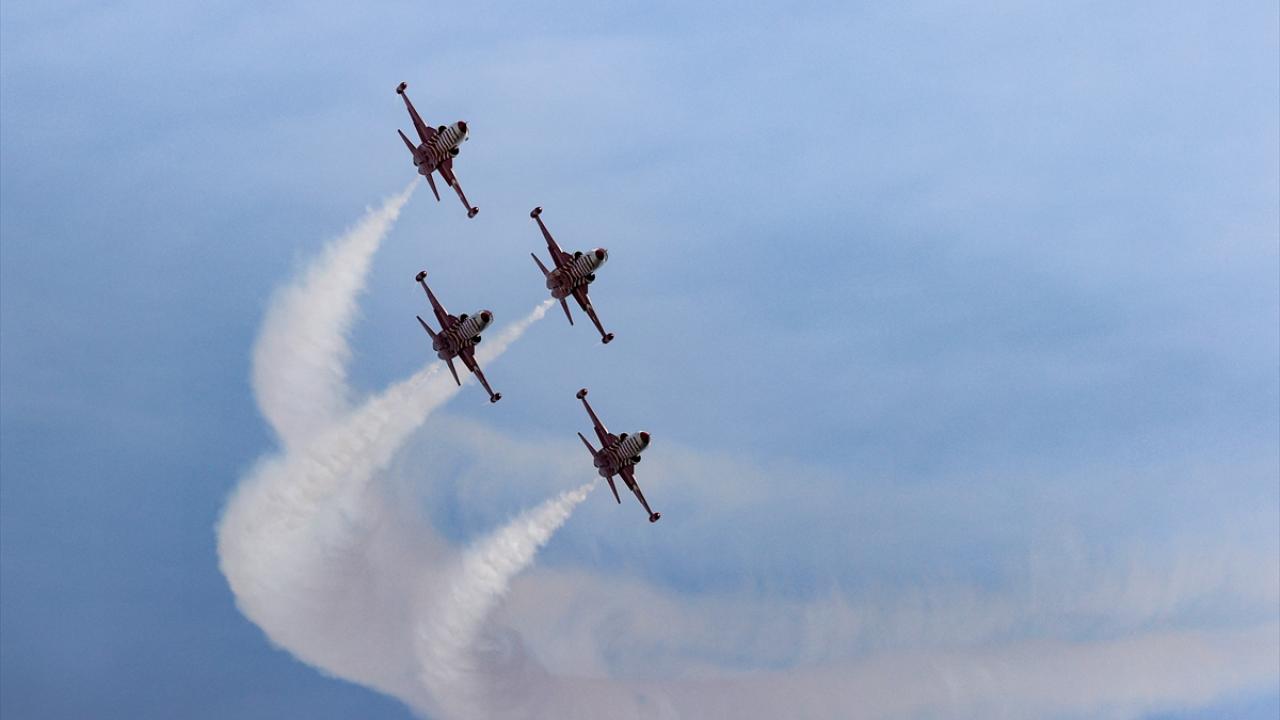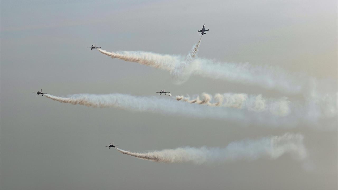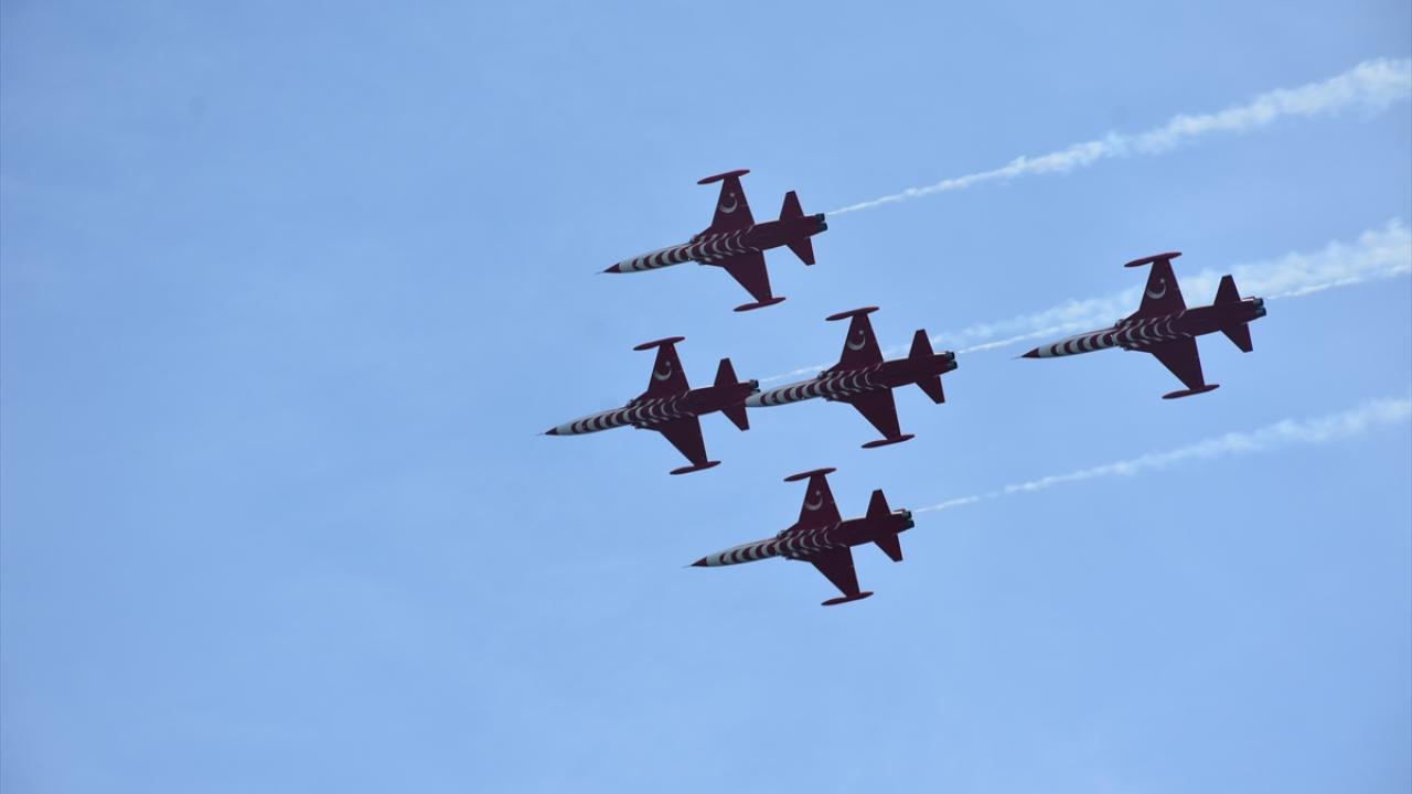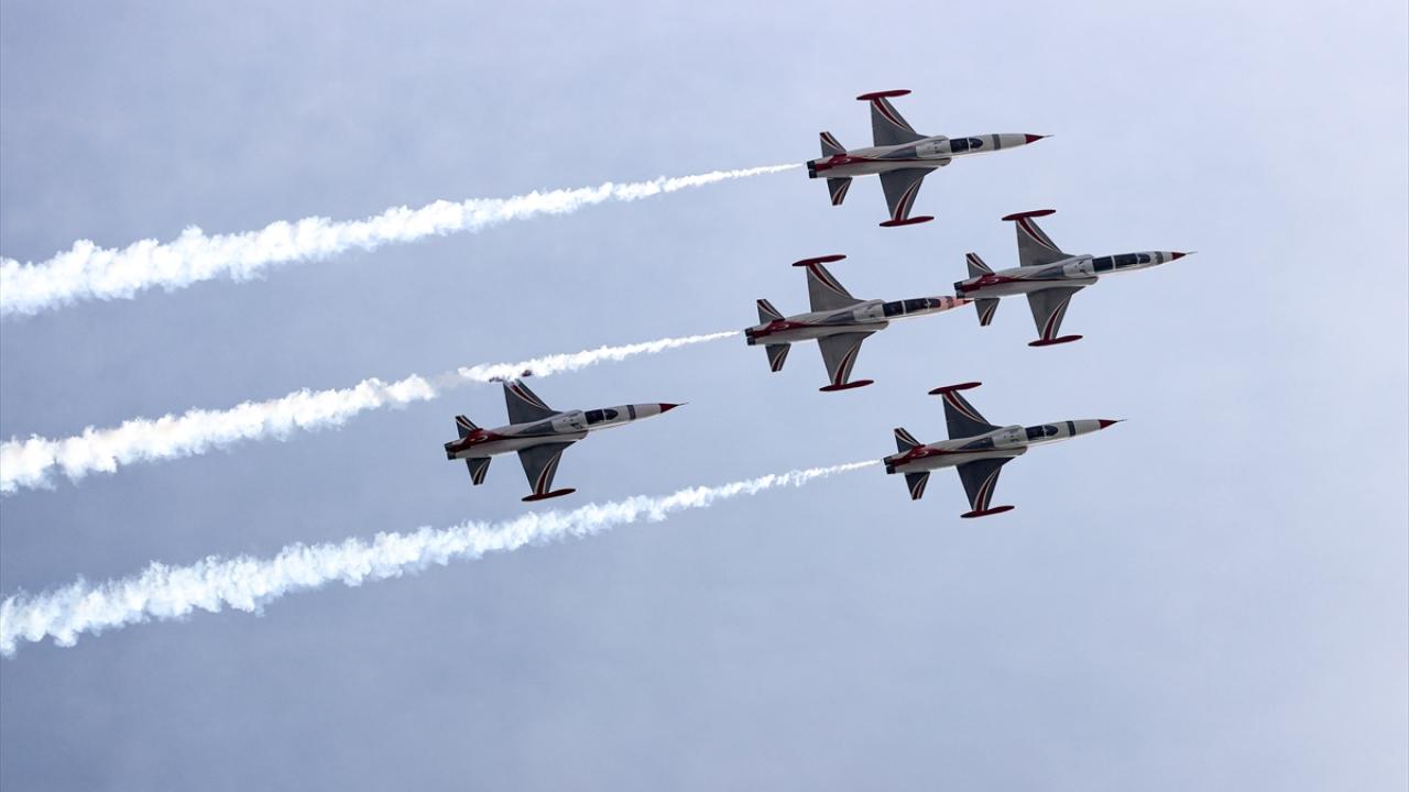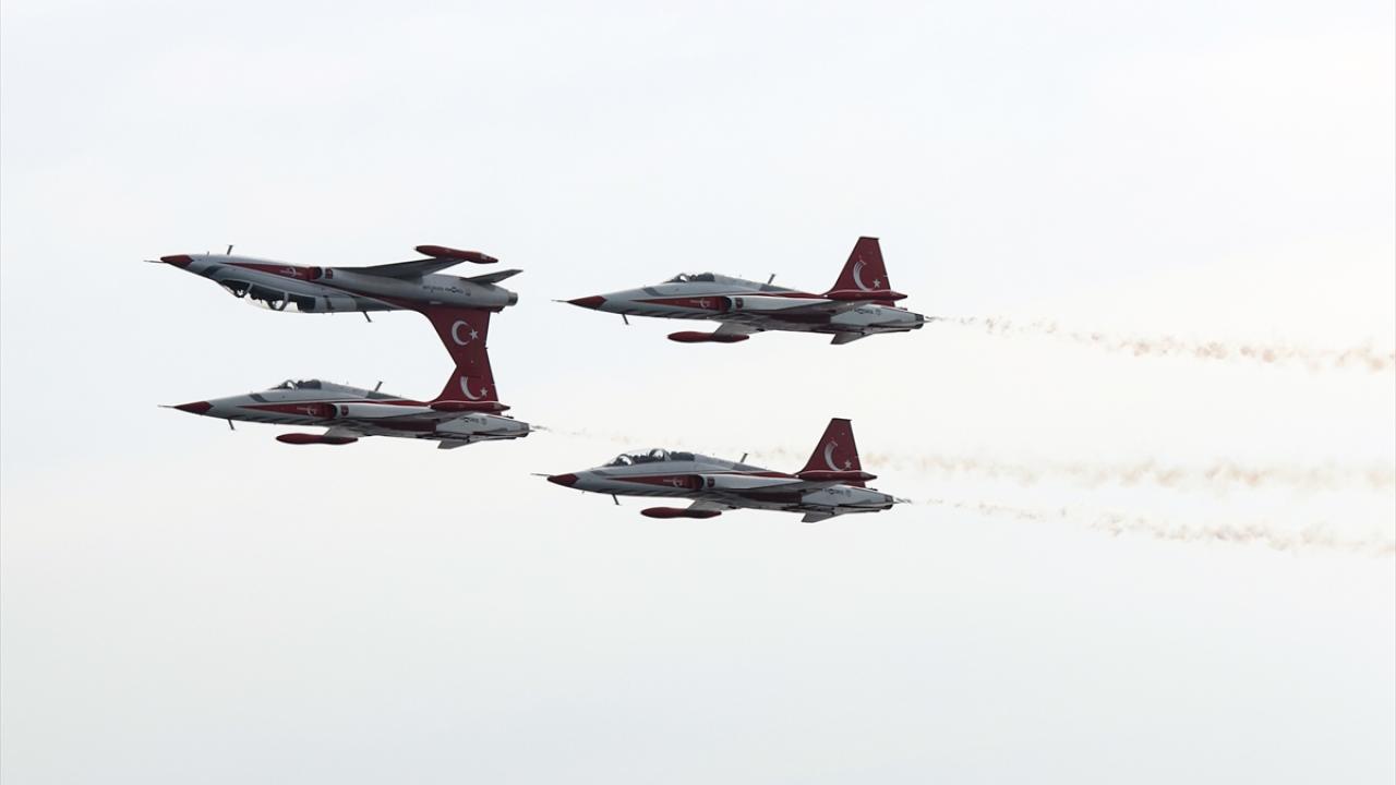 Türk Hava Kuvvetlerinin akrobasi timi Türk Yıldızları, Türkiye Cumhuriyeti'nin kurucusu Büyük Önder Mustafa Kemal Atatürk'ün ebediyete intikalinin 85. yılında, Antalya'da "Ata'ya saygı" uçuşu gerçekleştirdi.