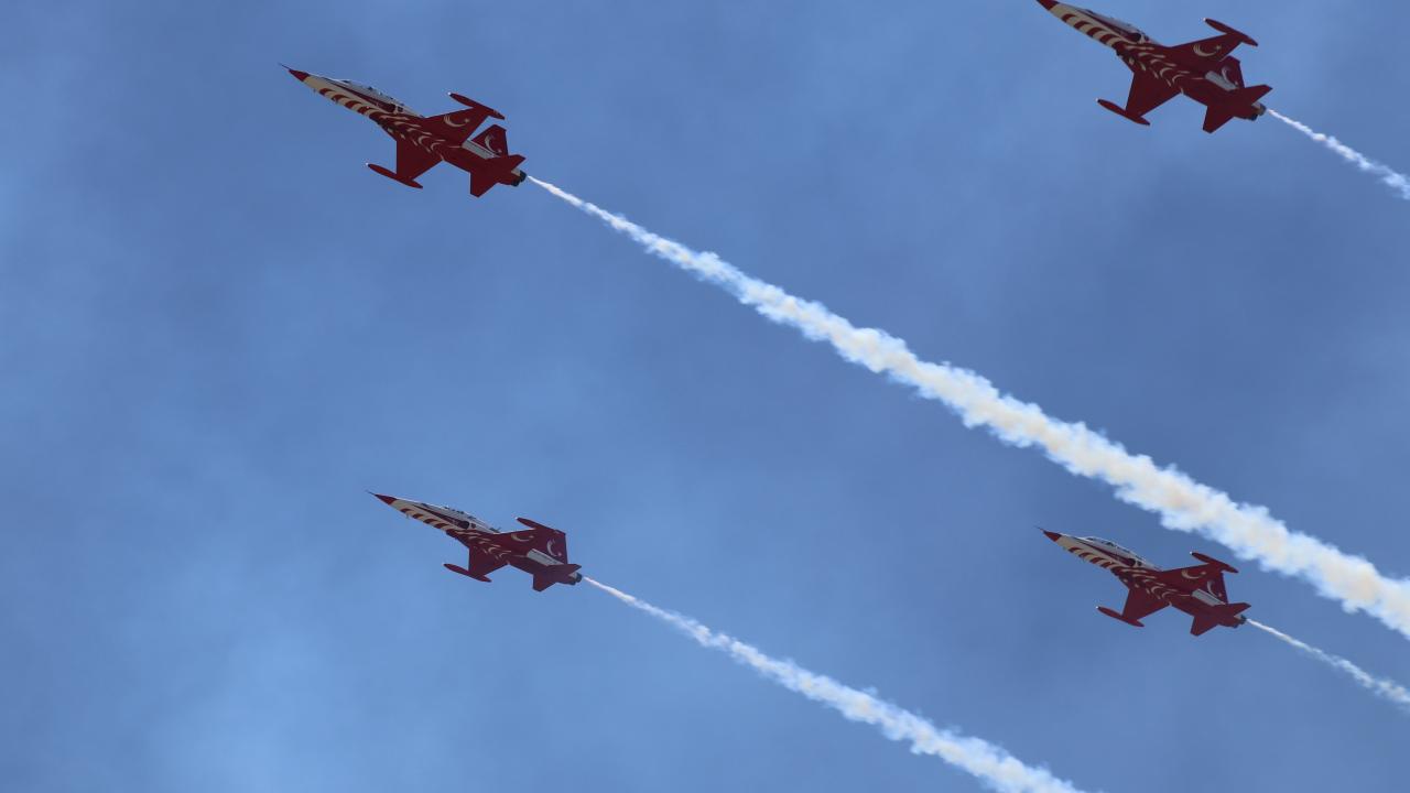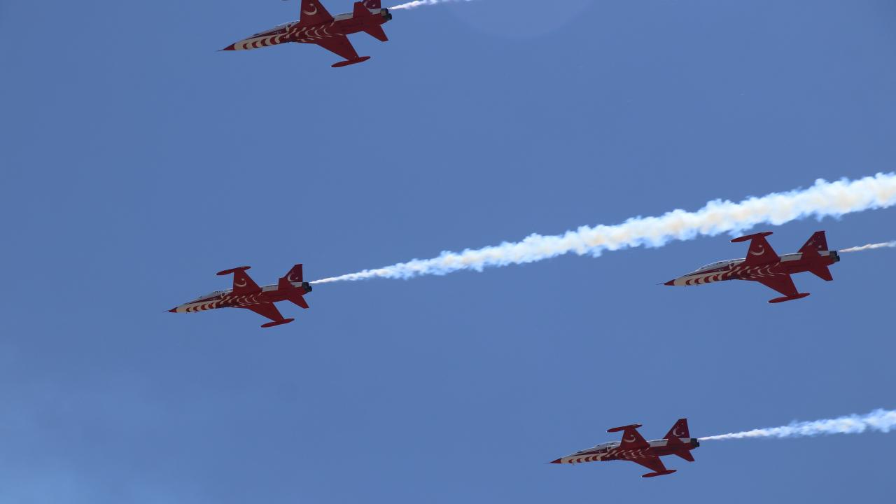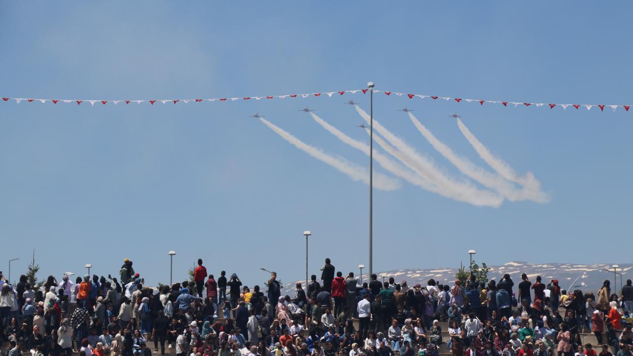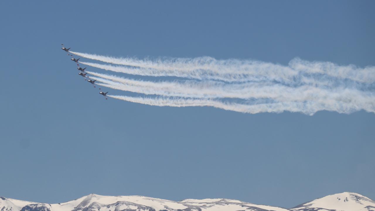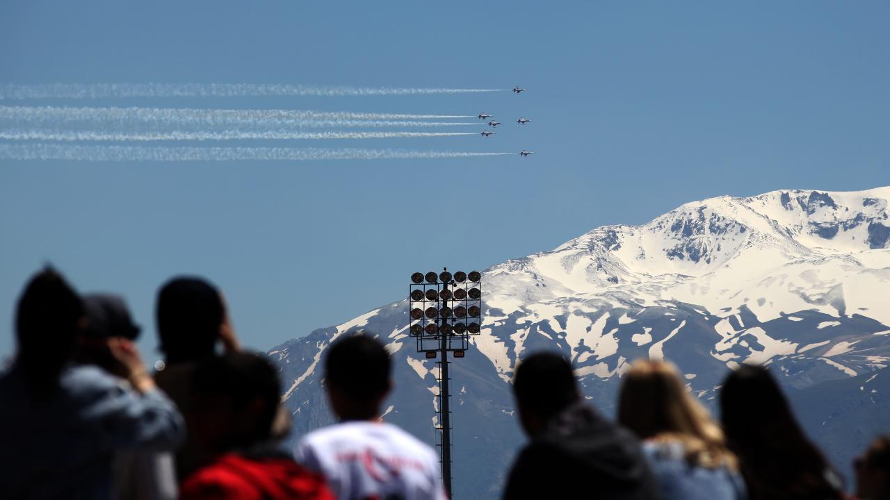 Erzincan Binali Yıldırım Üniversitesi (EBYÜ) bahar şenlikleri kapsamında Türk Hava Kuvvetlerinin akrobasi timi Türk Yıldızları, gösteri uçuşu gerçekleştirdi.