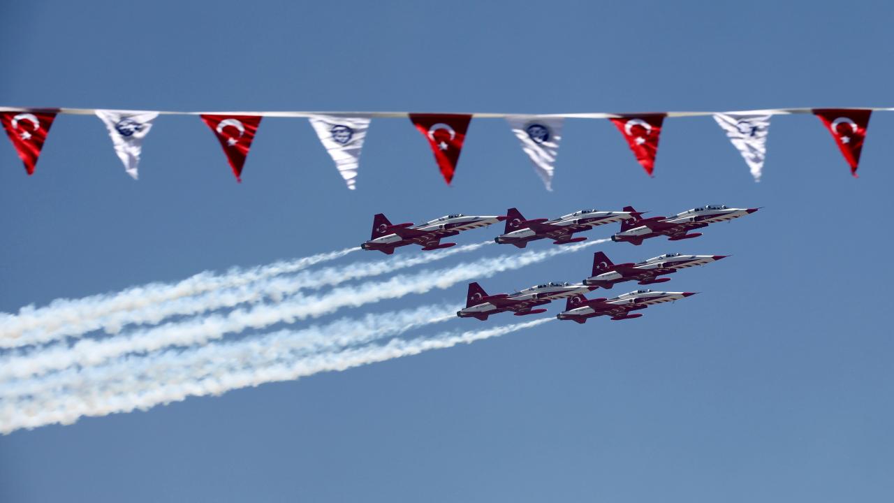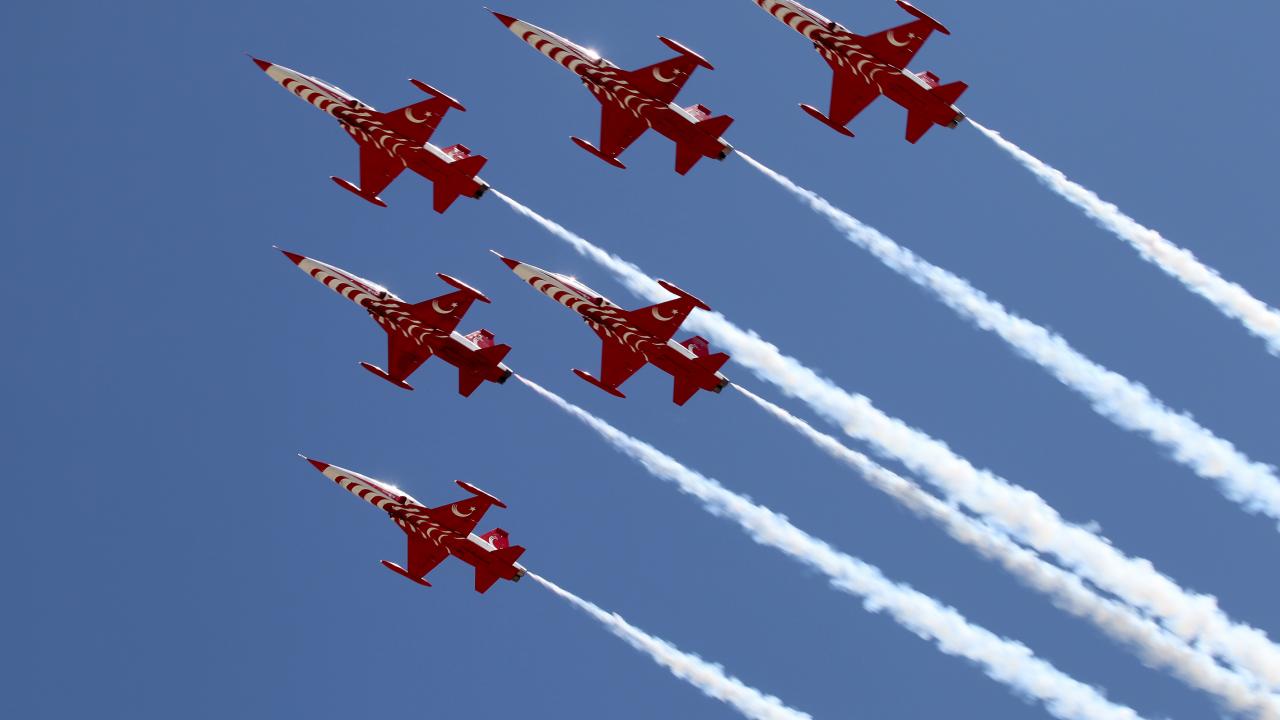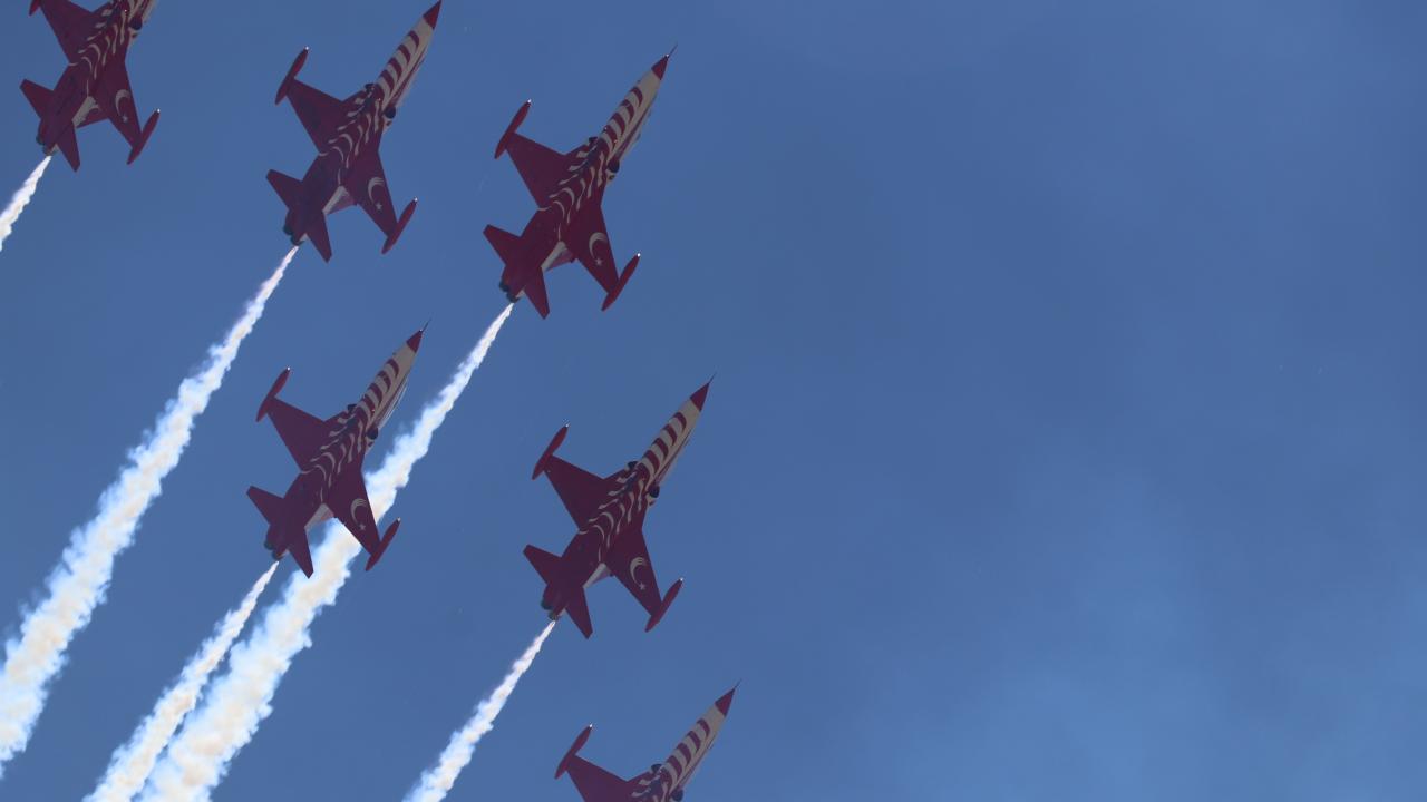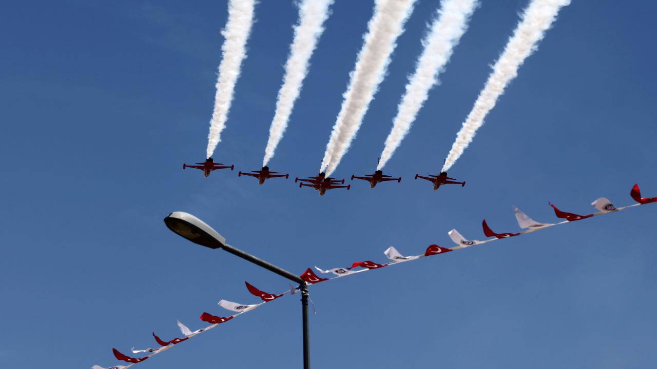 Erzincan Binali Yıldırım Üniversitesi (EBYÜ) bahar şenlikleri kapsamında Türk Hava Kuvvetlerinin akrobasi timi Türk Yıldızları, gösteri uçuşu gerçekleştirdi.