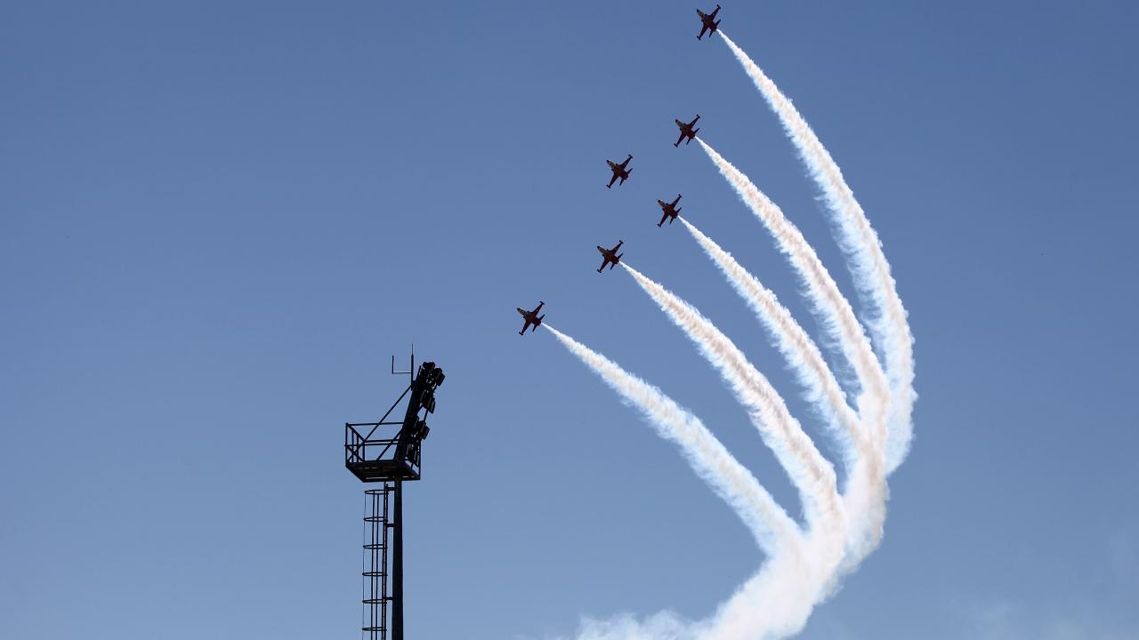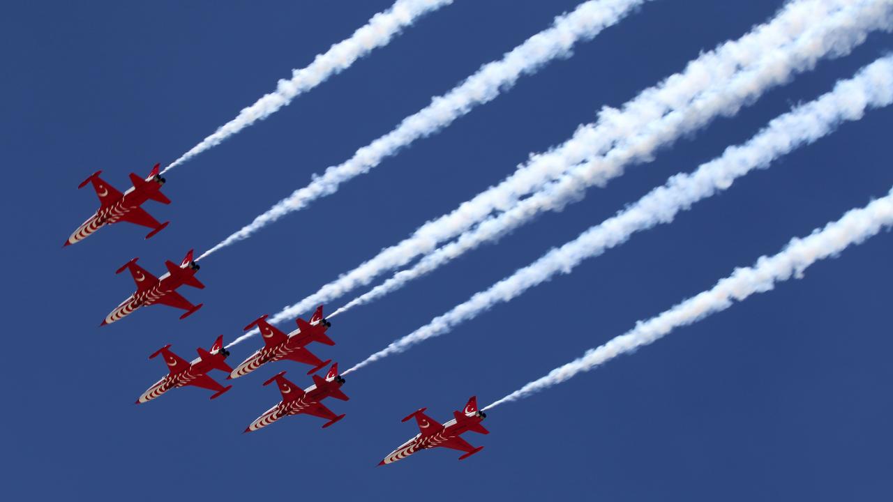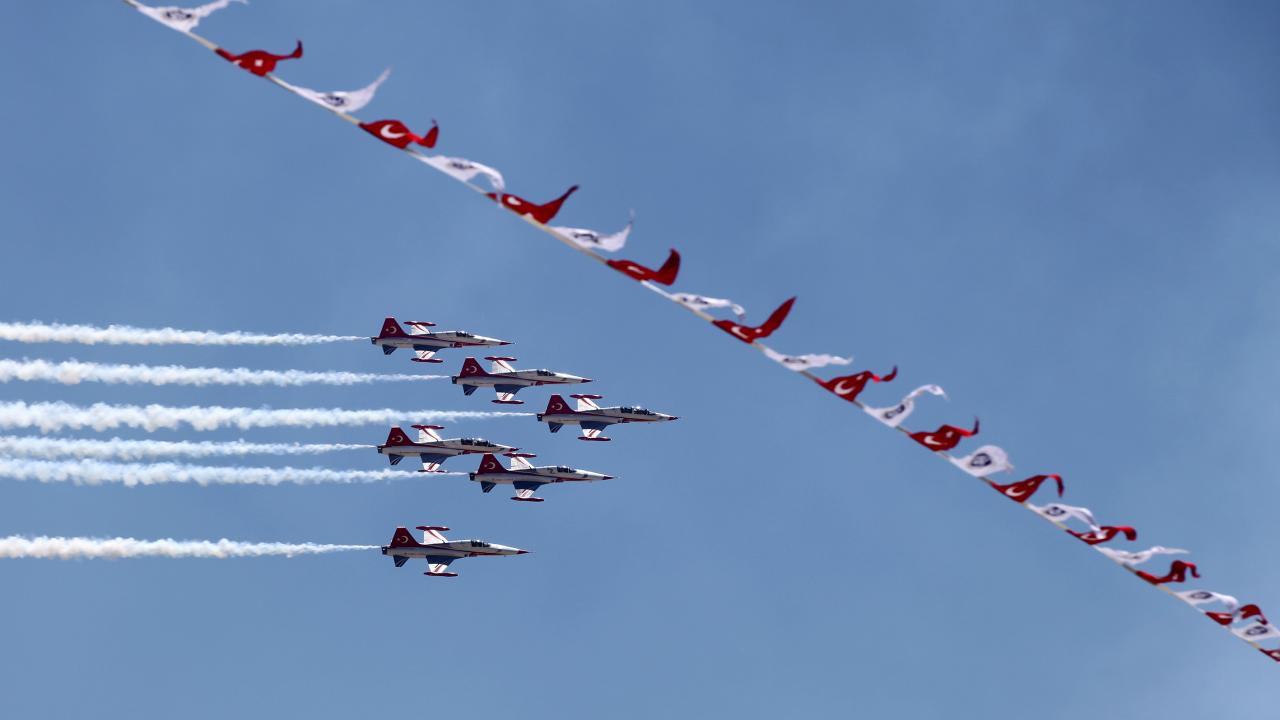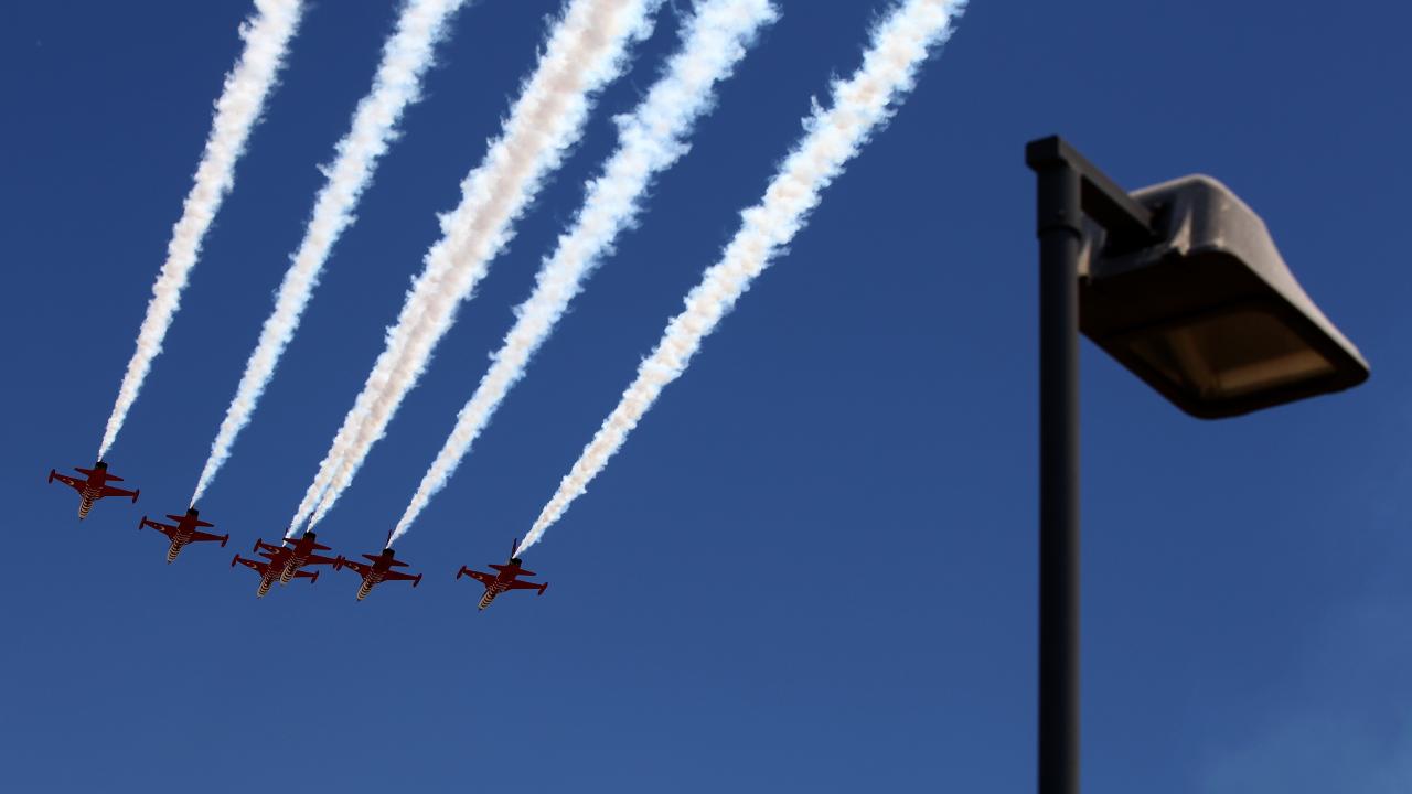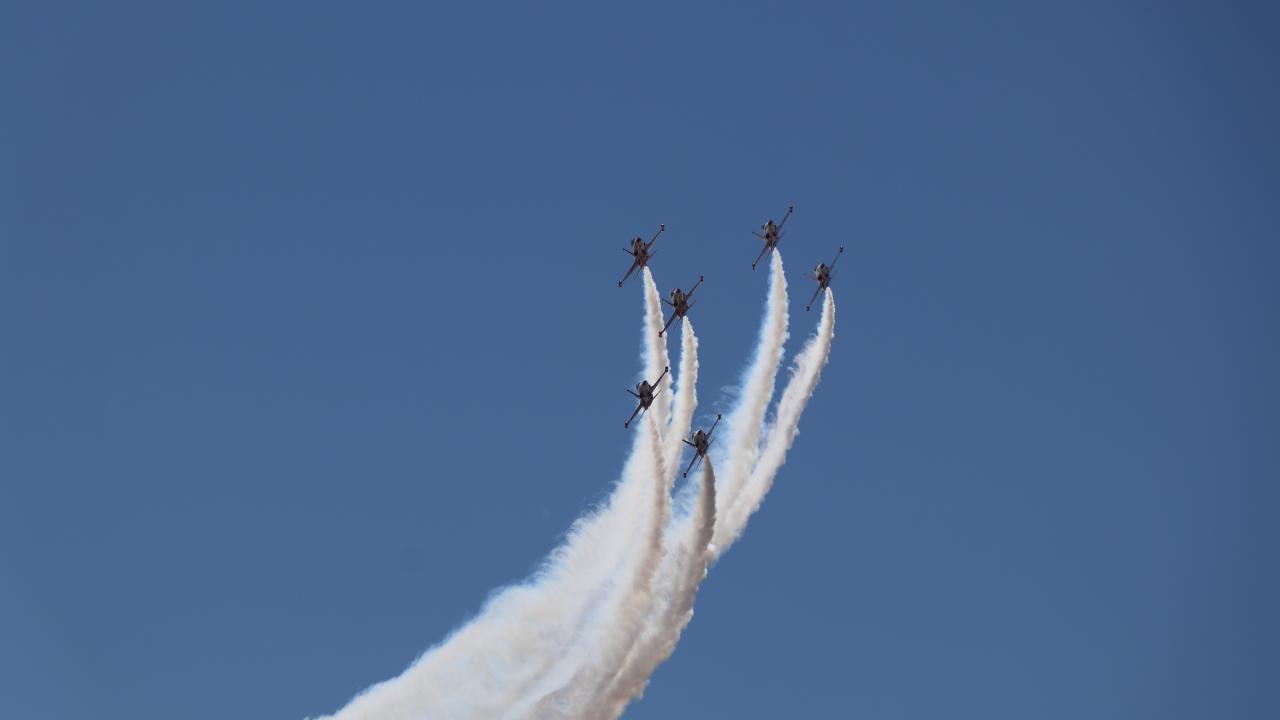 Erzincan Binali Yıldırım Üniversitesi (EBYÜ) bahar şenlikleri kapsamında Türk Hava Kuvvetlerinin akrobasi timi Türk Yıldızları, gösteri uçuşu gerçekleştirdi.