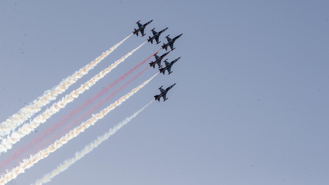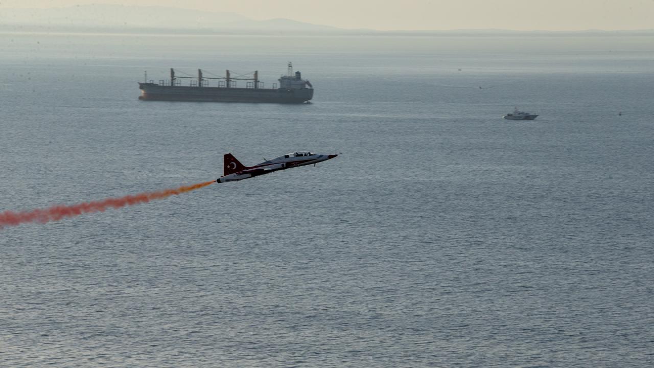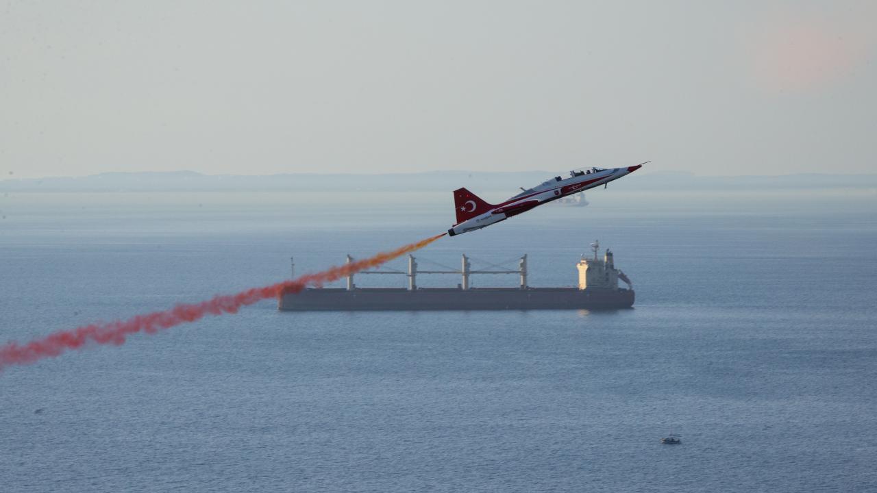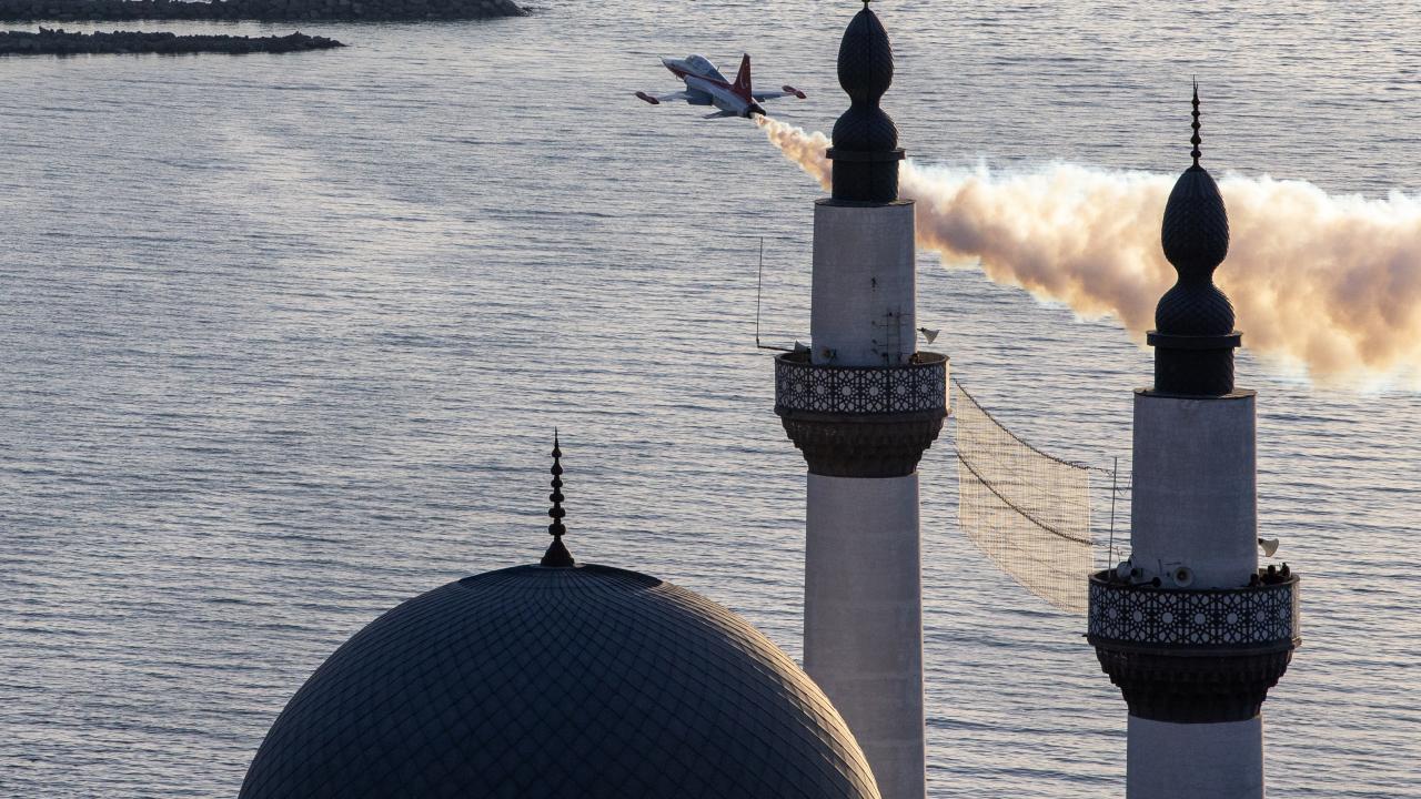 Türk Hava Kuvvetlerinin akrobasi timi Türk Yıldızları, Hatay'ın İskenderun ilçesinde 23 Nisan Ulusal Egemenlik ve Çocuk Bayramı nedeniyle gösteri uçuşu yaptı.