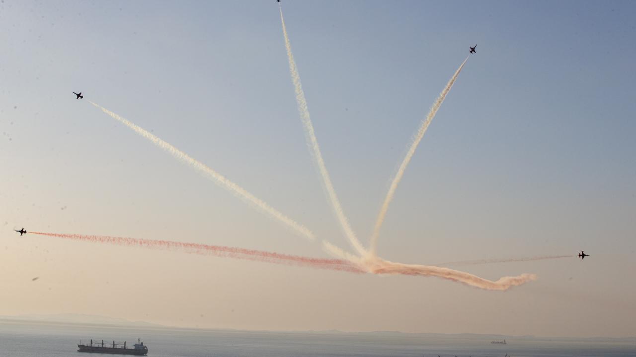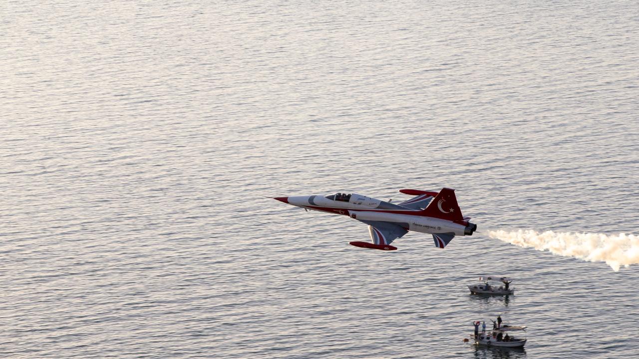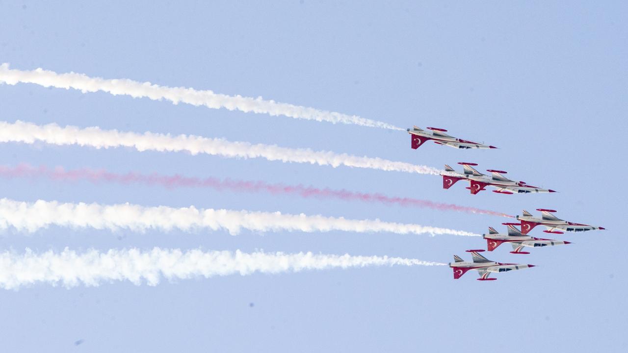 Türk Yıldızları, gösteri uçuşunda yaptığı akrobatik hareketlerle izleyenlere unutulmaz anlar yaşattı.
