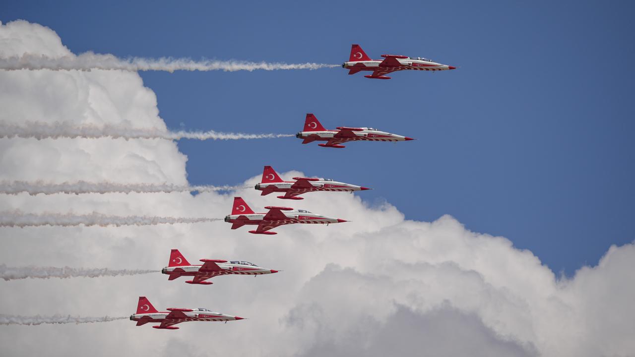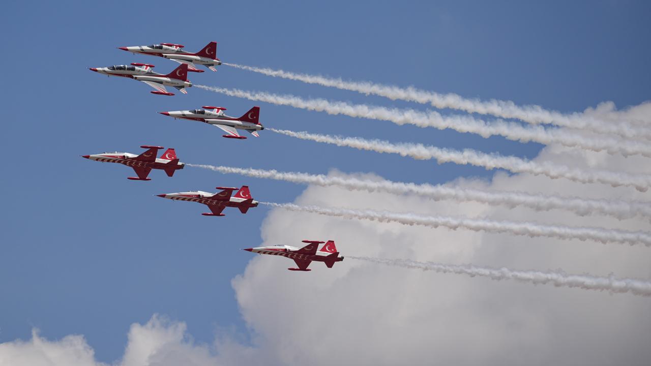Festivalin son gününde gösteri uçuşu gerçekleştiren Türk Yıldızları, katılımcılara unutulmaz anlar yaşattı.
