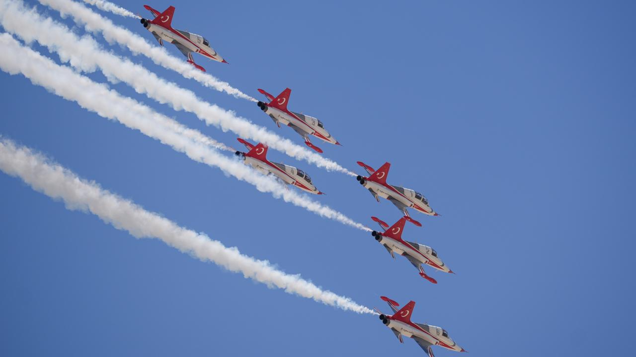 Uçakların gökyüzüne ay ve yıldız çizmesi katılımcılar tarafından büyük bir merakla takip edildi.