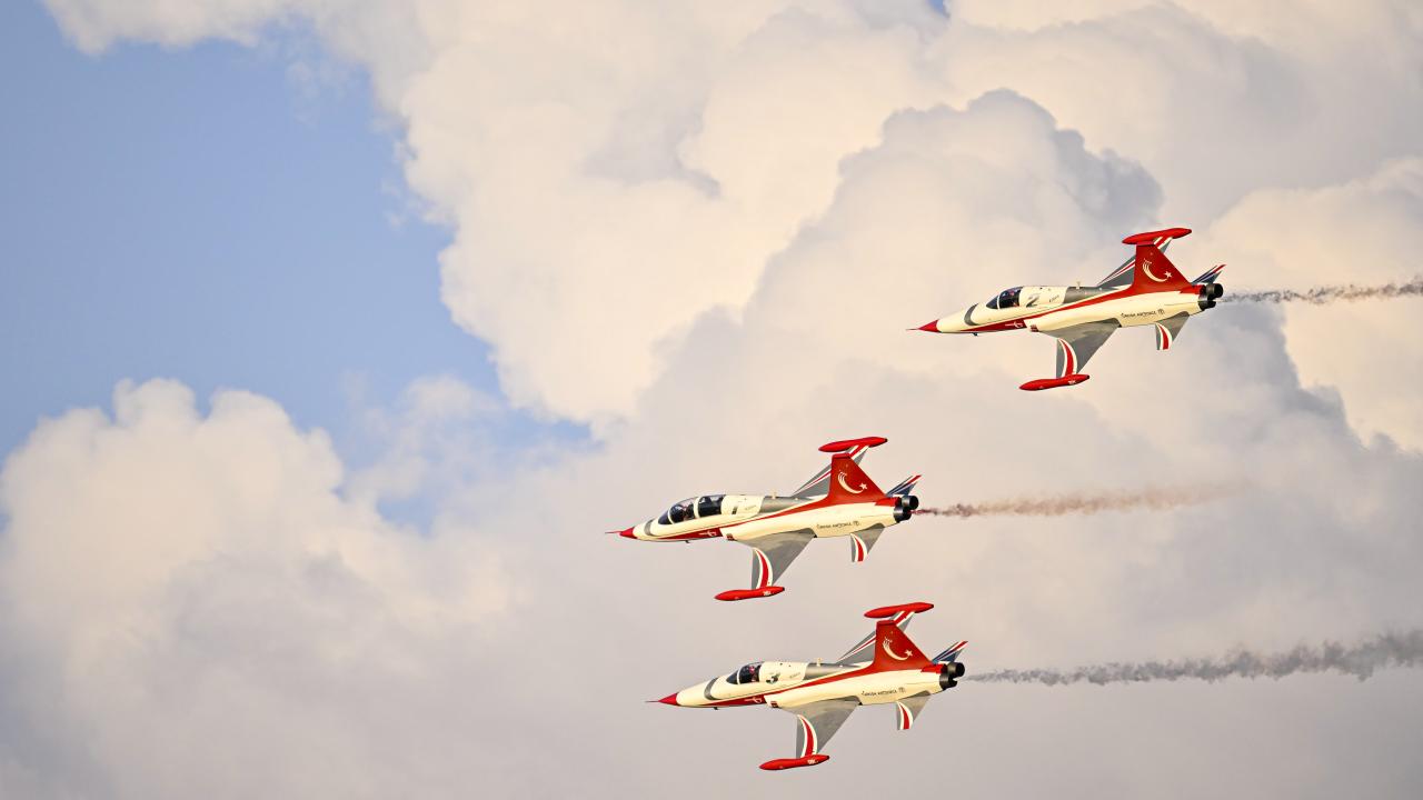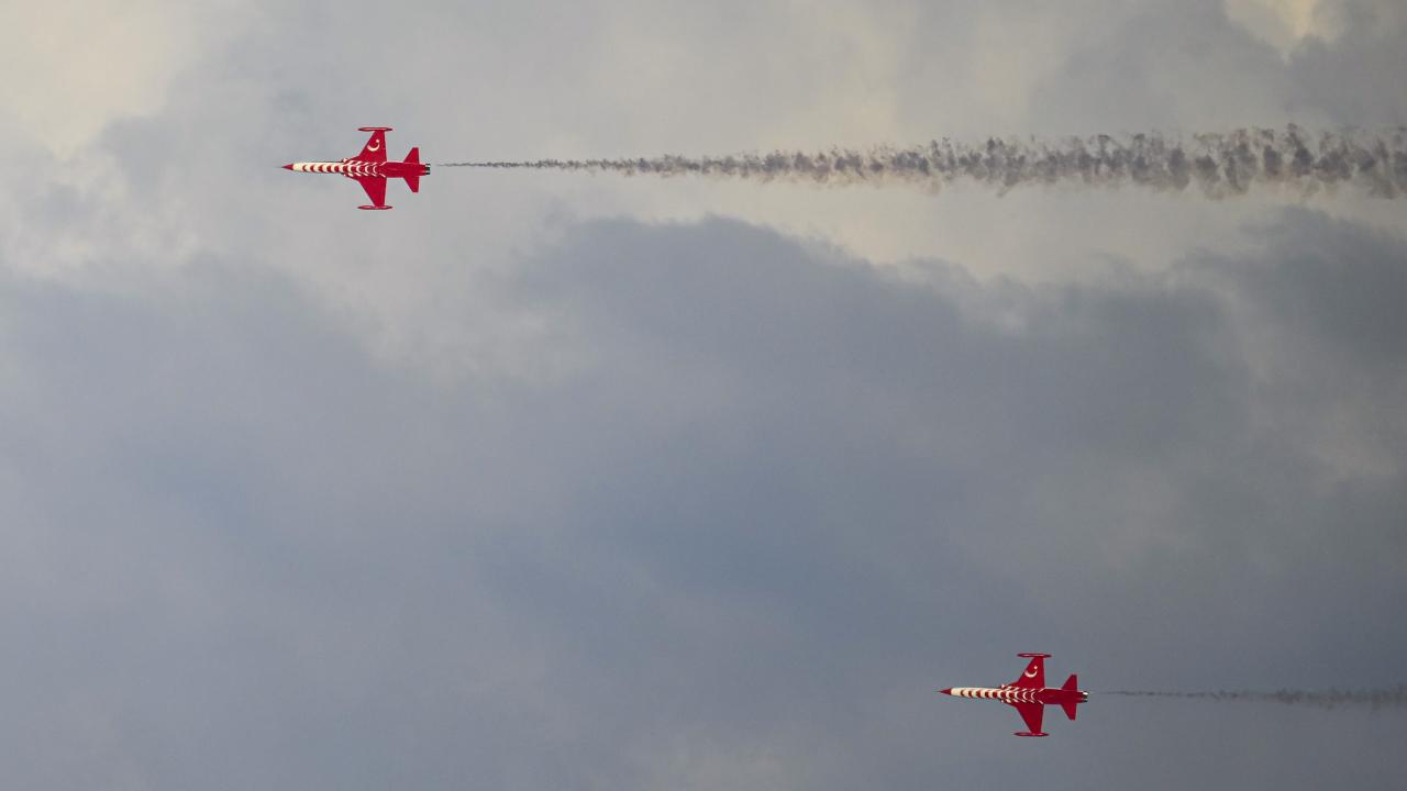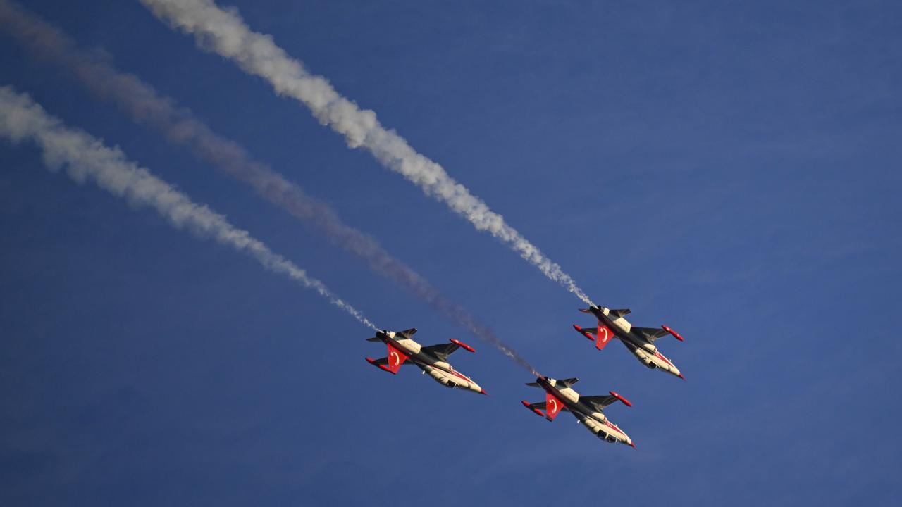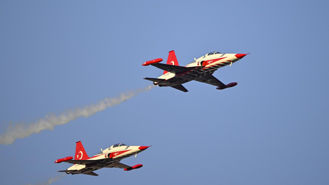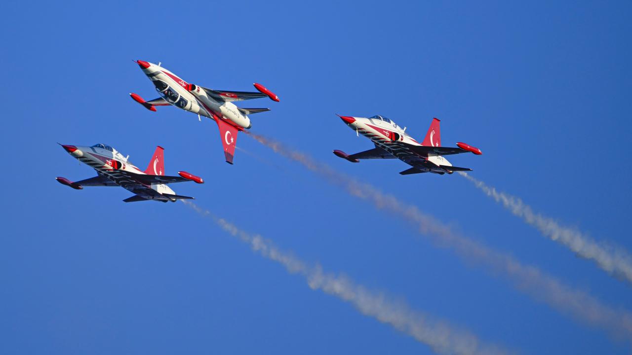 Ankara'nın Gölbaşı ilçesinde bulunan Mogan Gölü ve çevresinde 30 Ağustos Zafer Bayramı Kutlama Etkinlikleri kapsamında Türk Yıldızları çevre tanıma uçuşu gerçekleştirdi.
