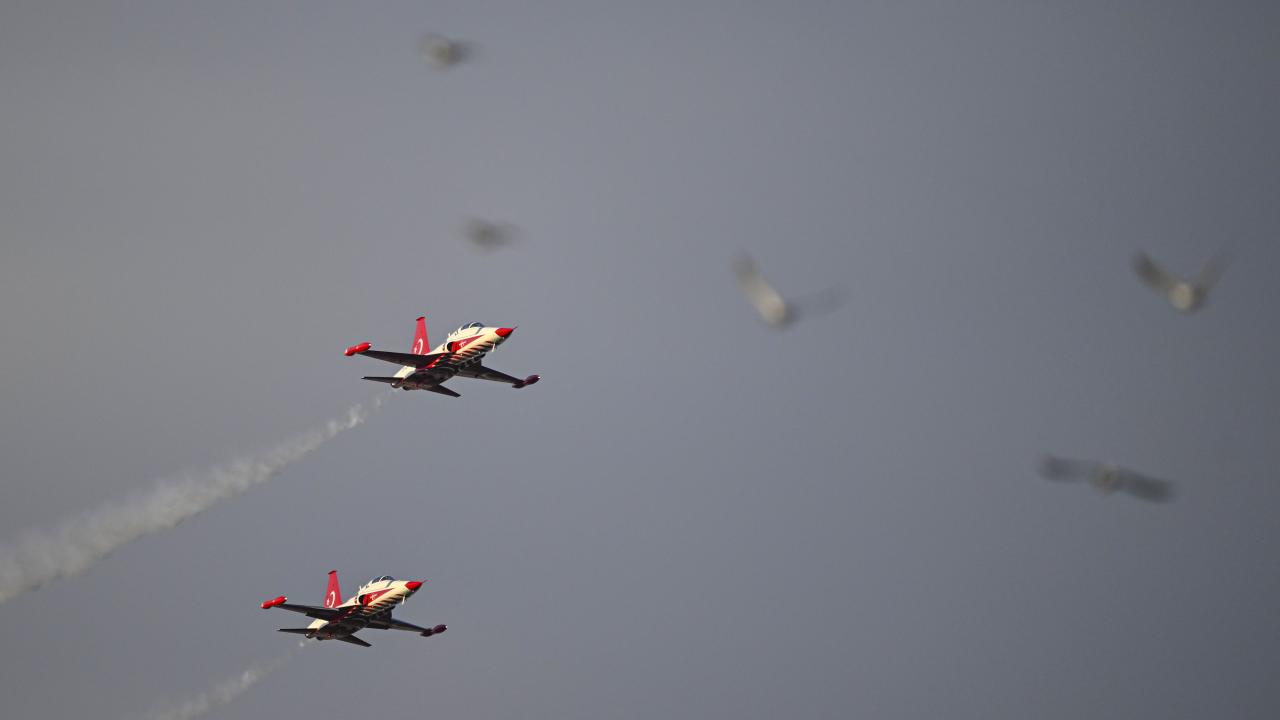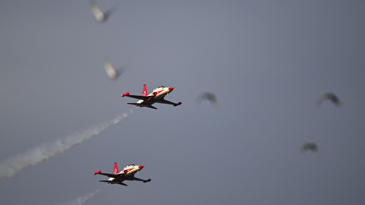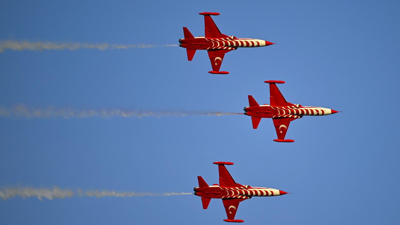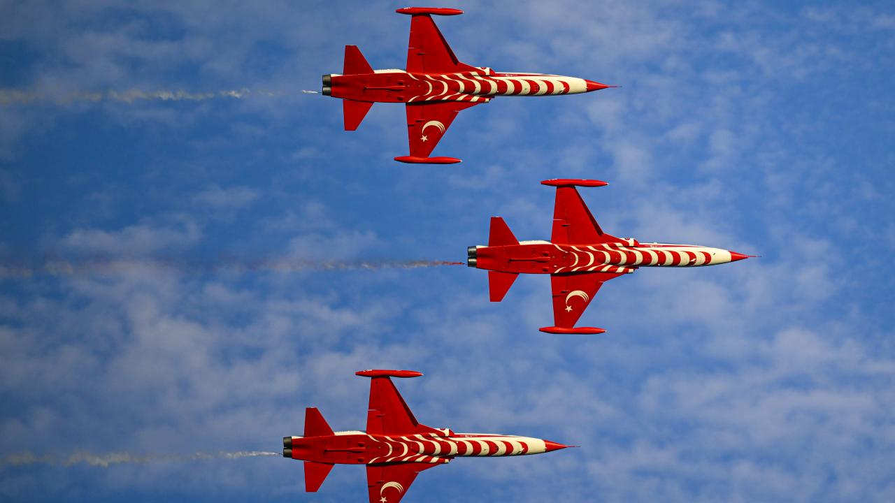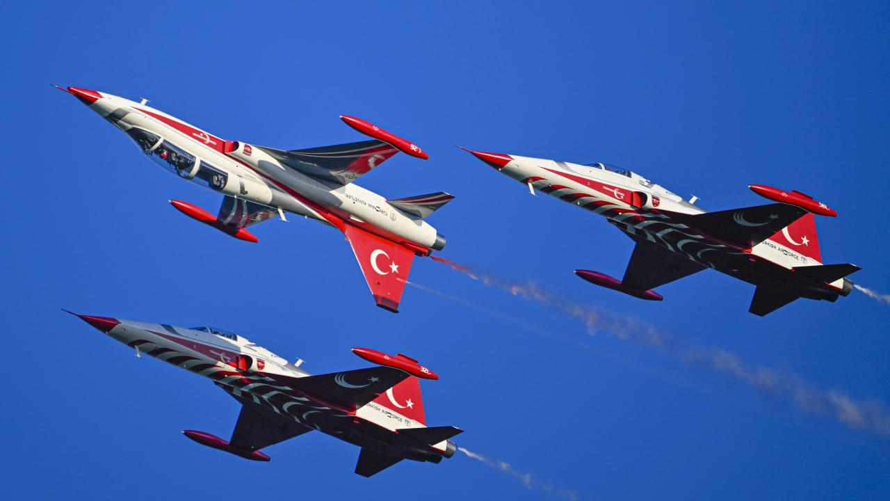 Ankara'nın Gölbaşı ilçesinde bulunan Mogan Gölü ve çevresinde 30 Ağustos Zafer Bayramı Kutlama Etkinlikleri kapsamında Türk Yıldızları çevre tanıma uçuşu gerçekleştirdi.