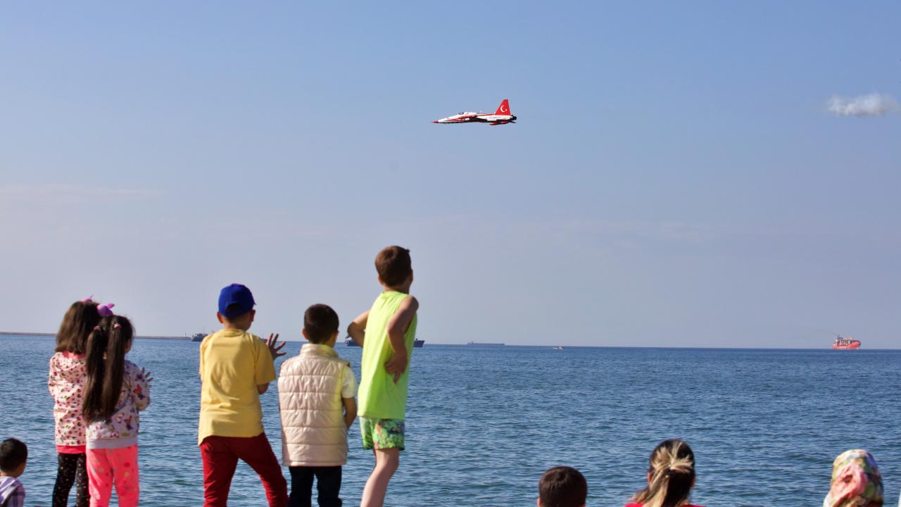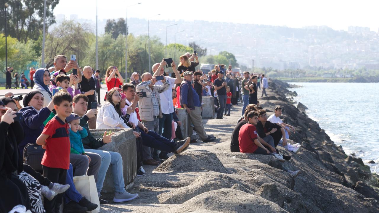 Vatandaşlar uçuşu kentin farklı bölgelerinde heyecanla izledi, bazı vatandaşlar gösteriyi telefonlarıyla kaydetti.