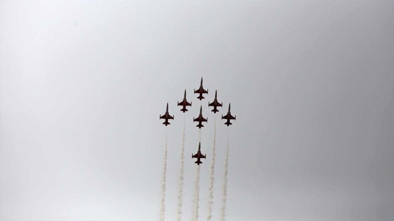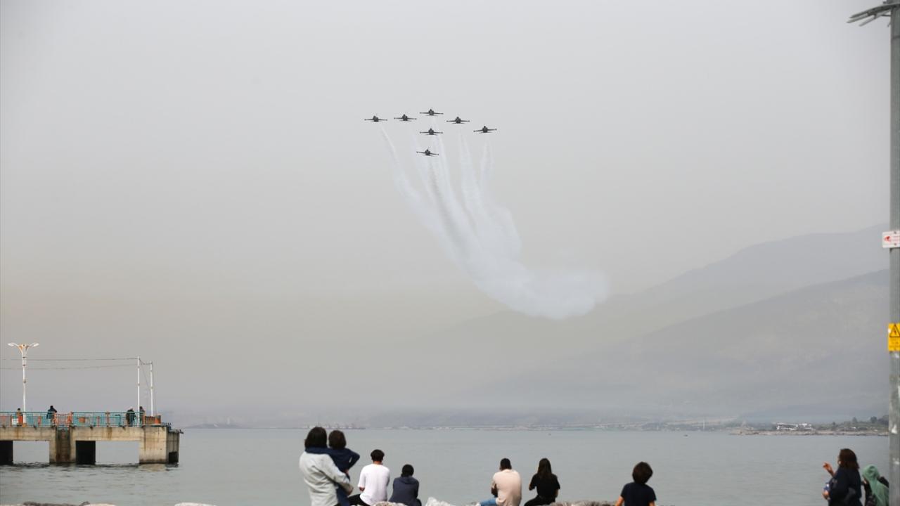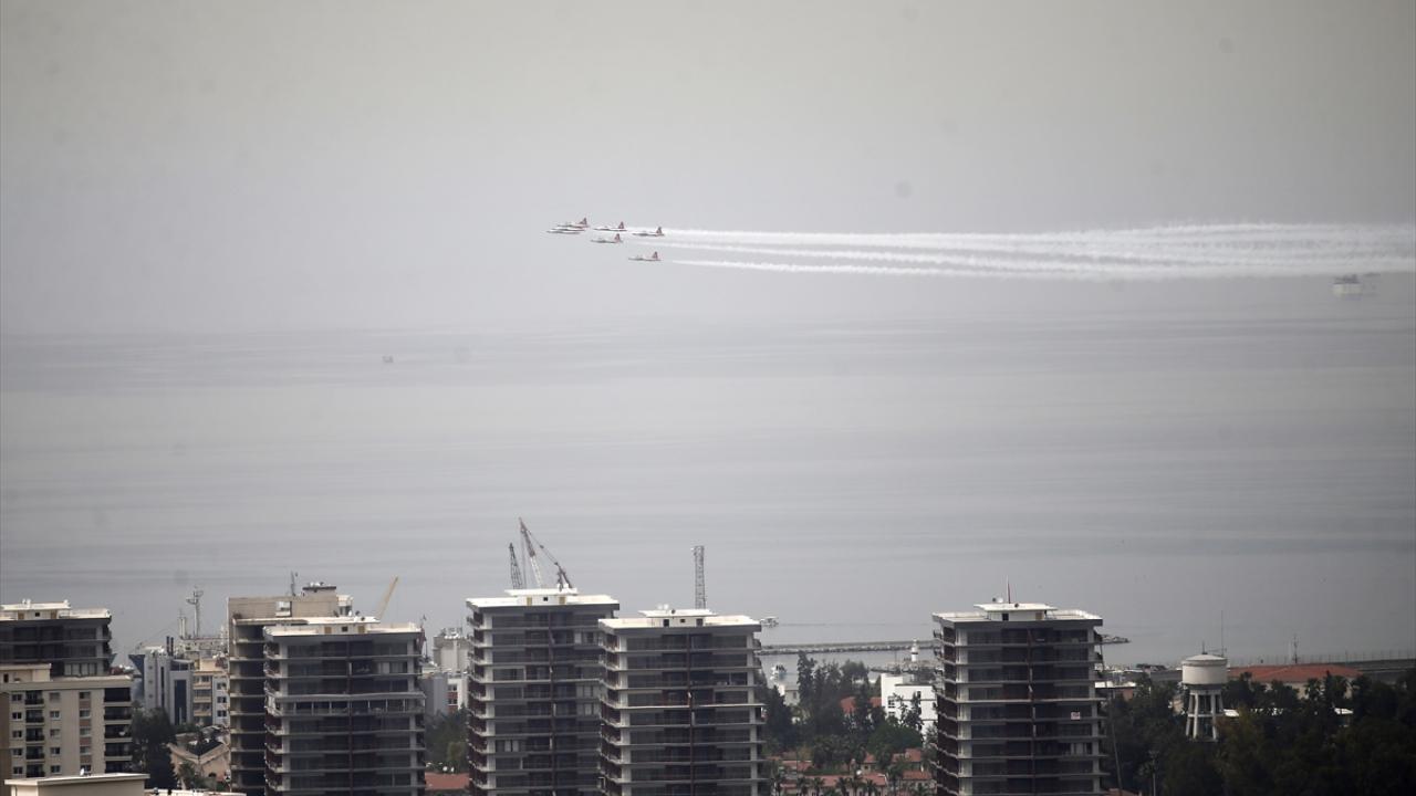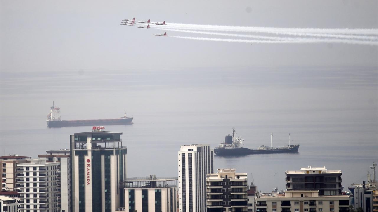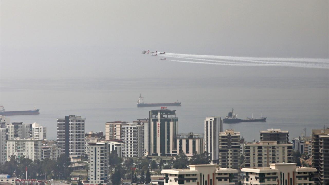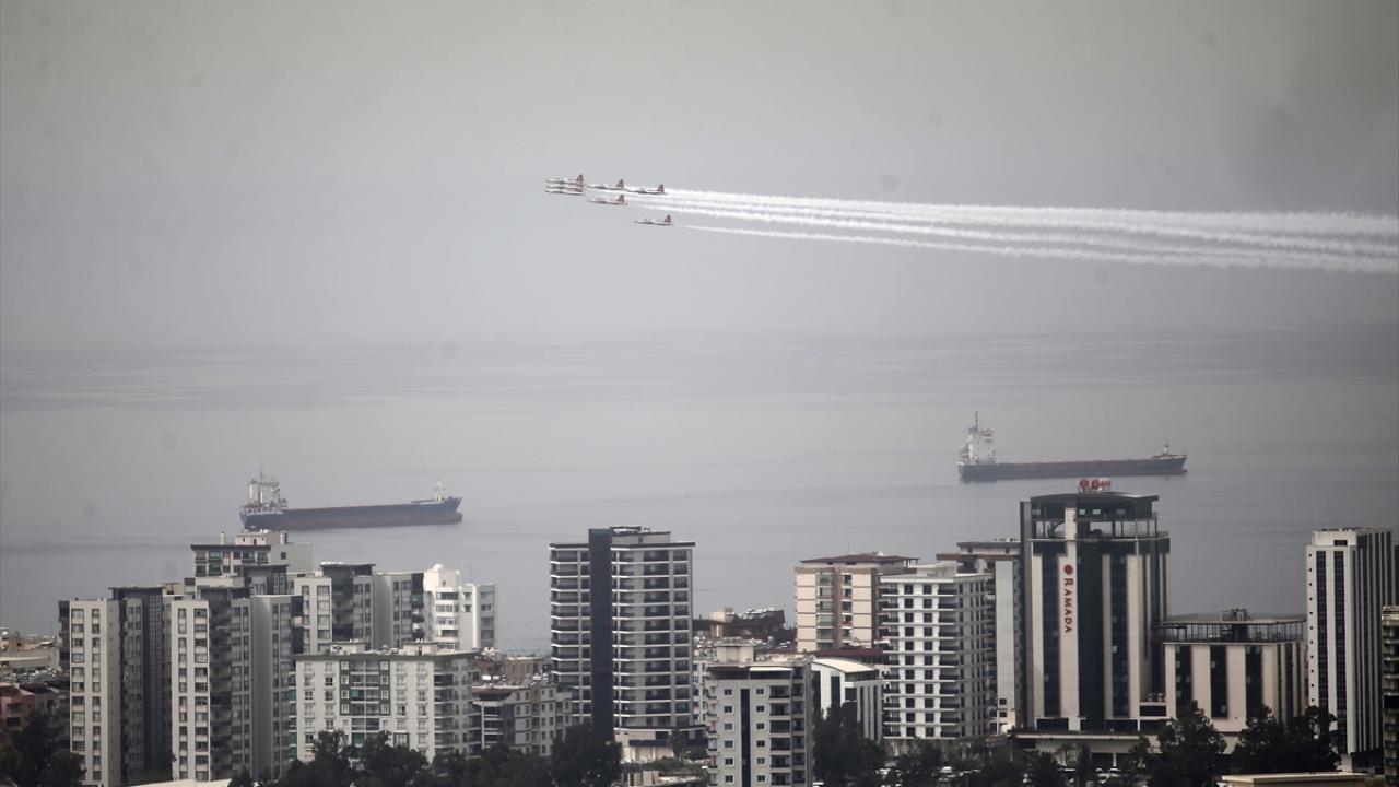 Türk Hava Kuvvetlerinin akrobasi timi "Türk Yıldızları", Hatay'ın İskenderun ilçesinde selamlama uçuşu gerçekleştirdi.