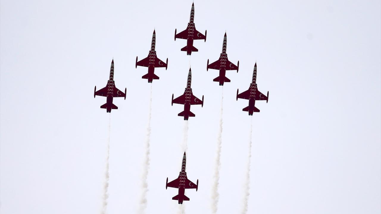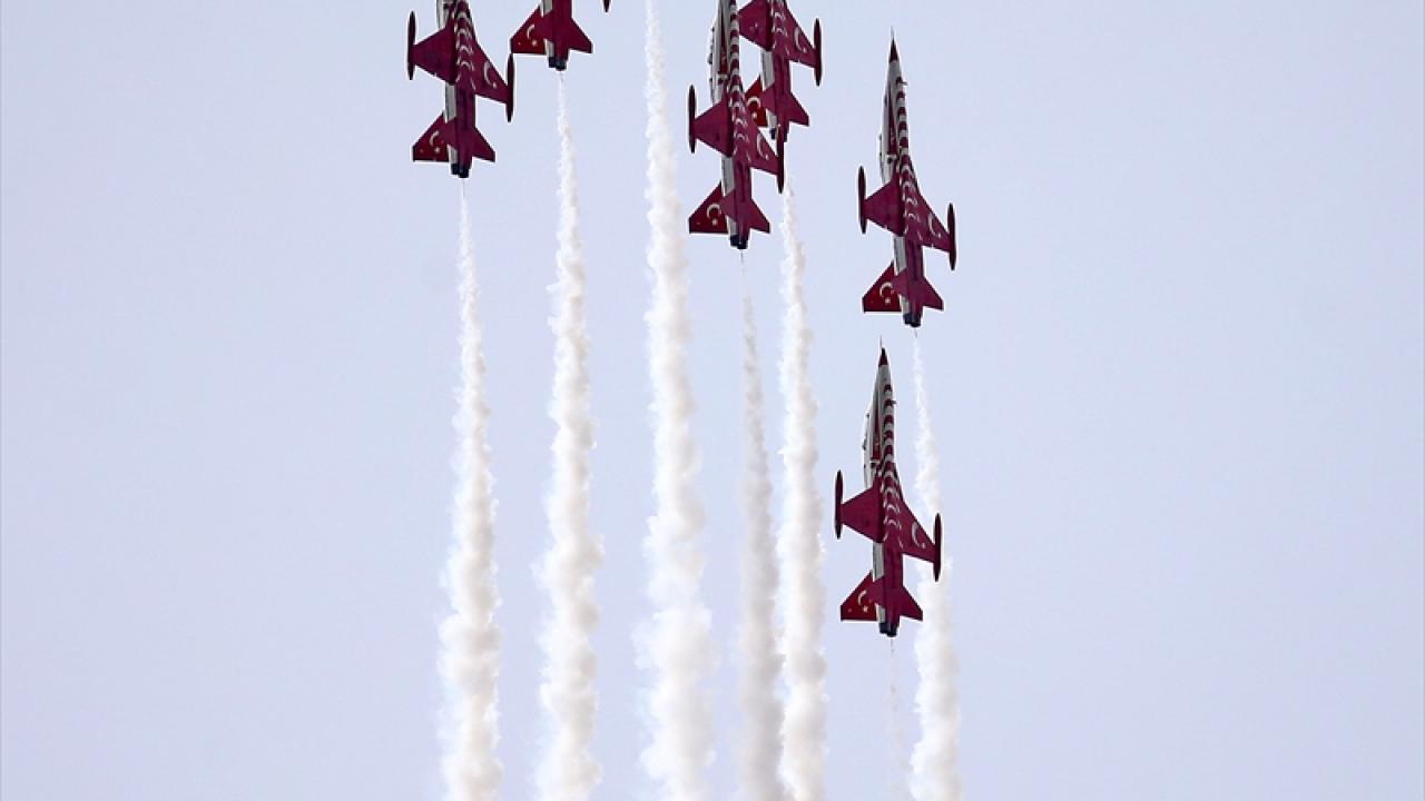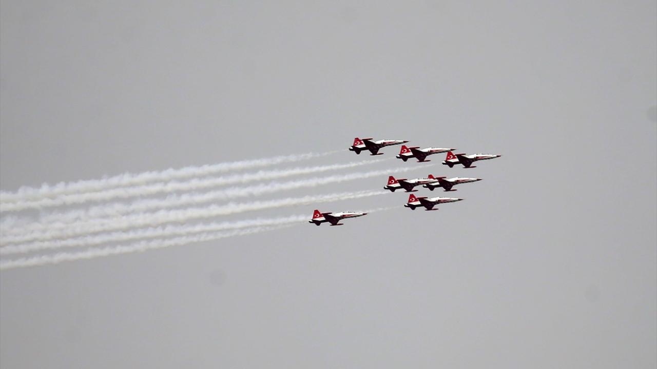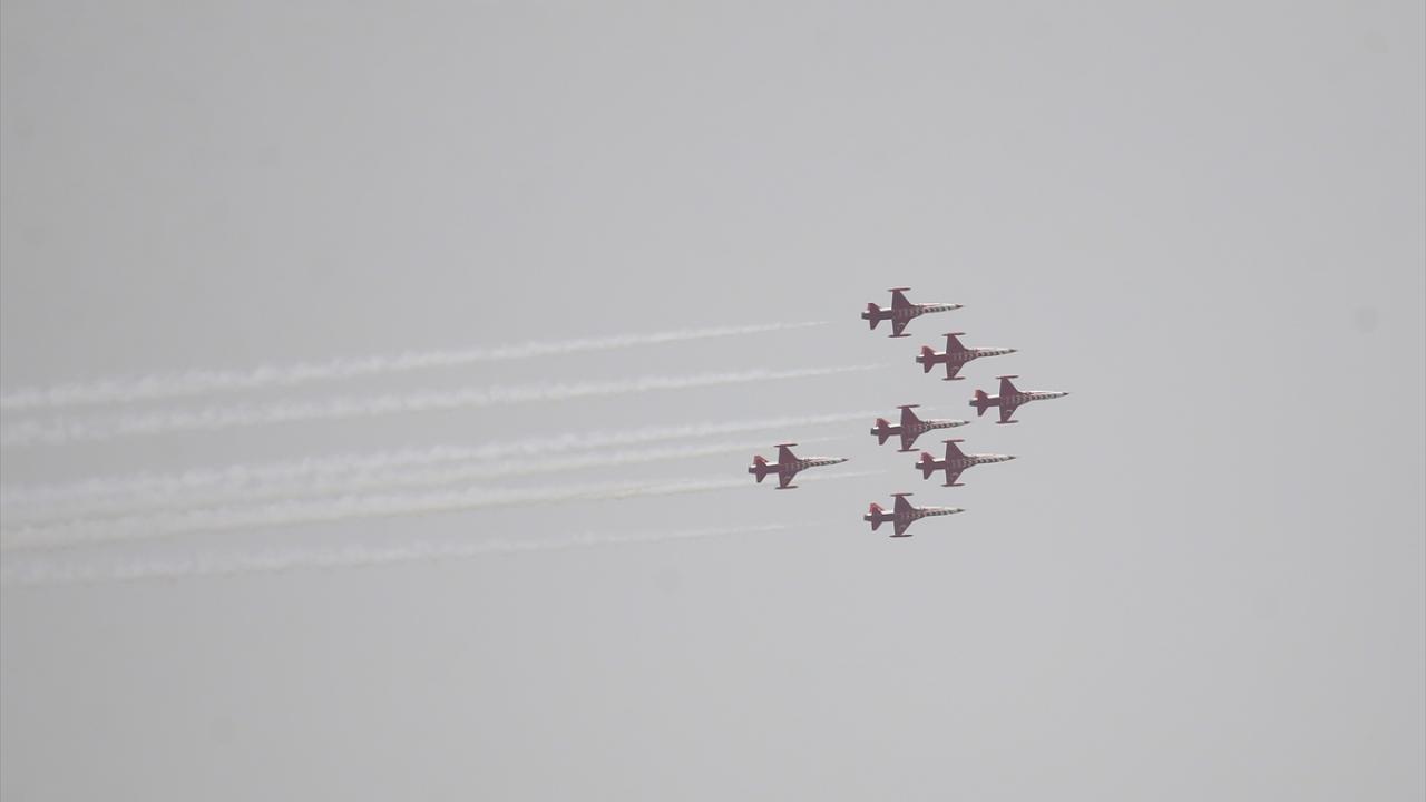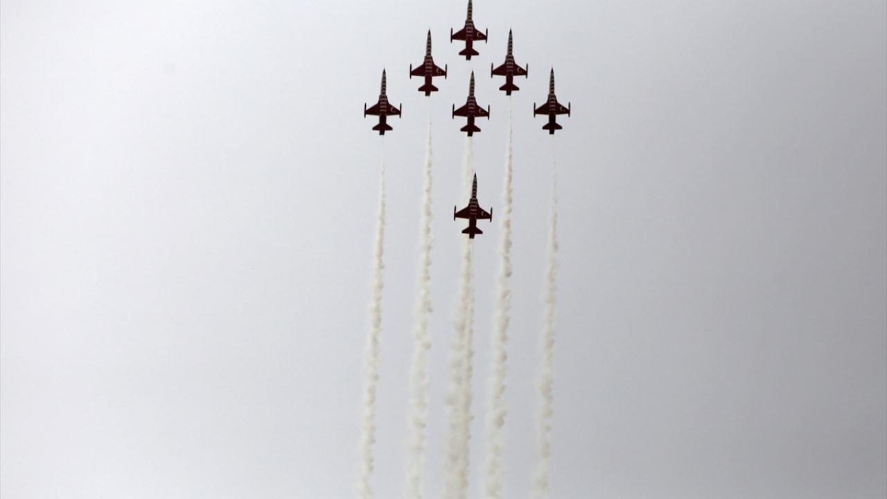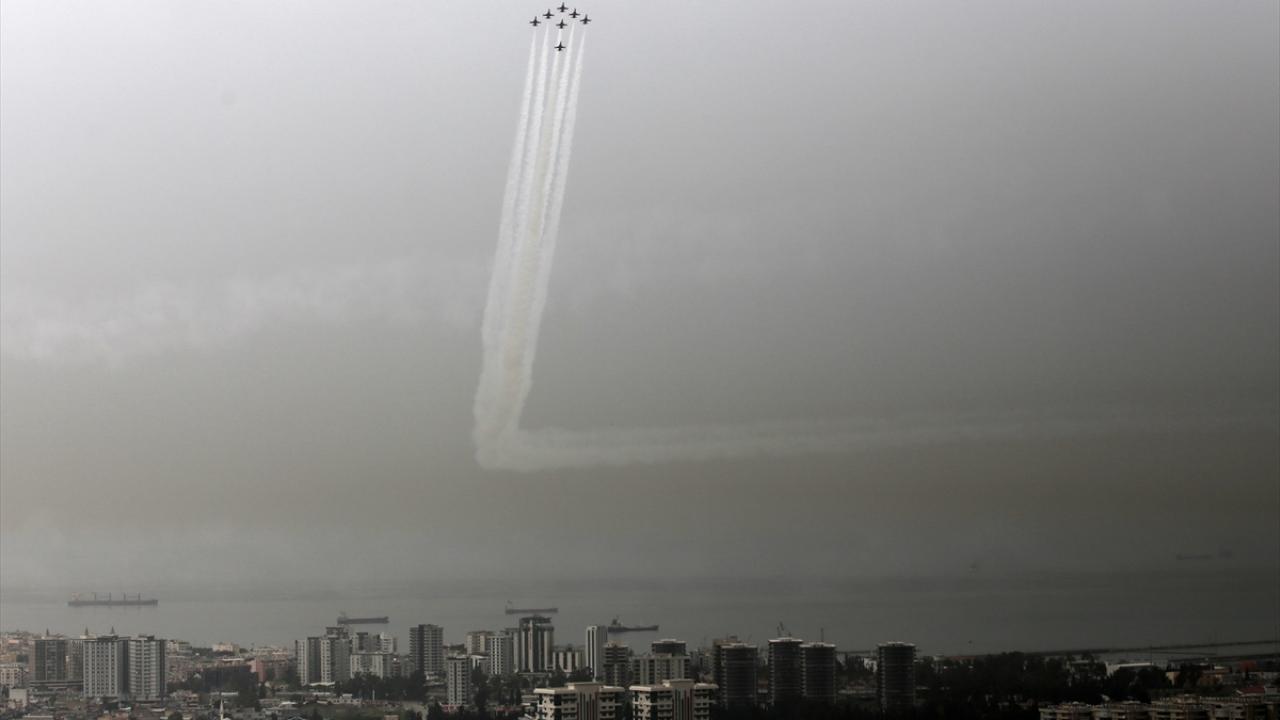 Türk Hava Kuvvetlerinin akrobasi timi "Türk Yıldızları", Hatay'ın İskenderun ilçesinde selamlama uçuşu gerçekleştirdi.