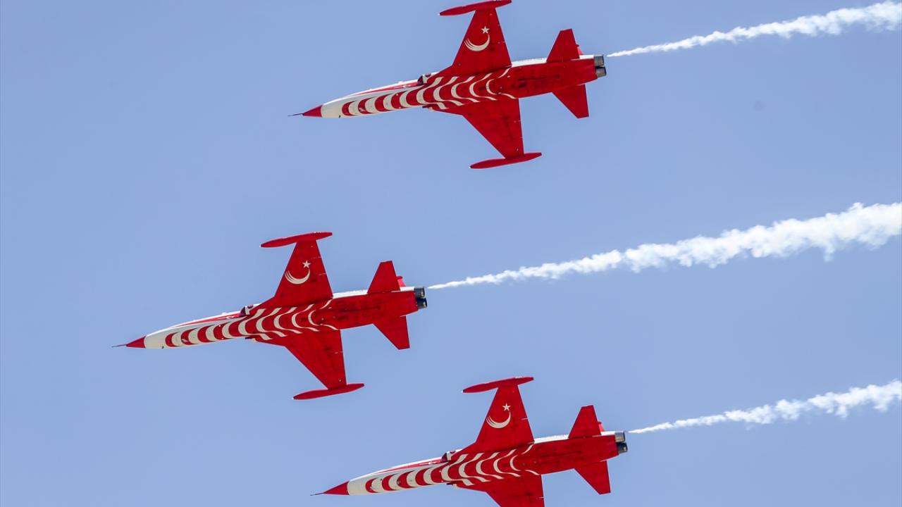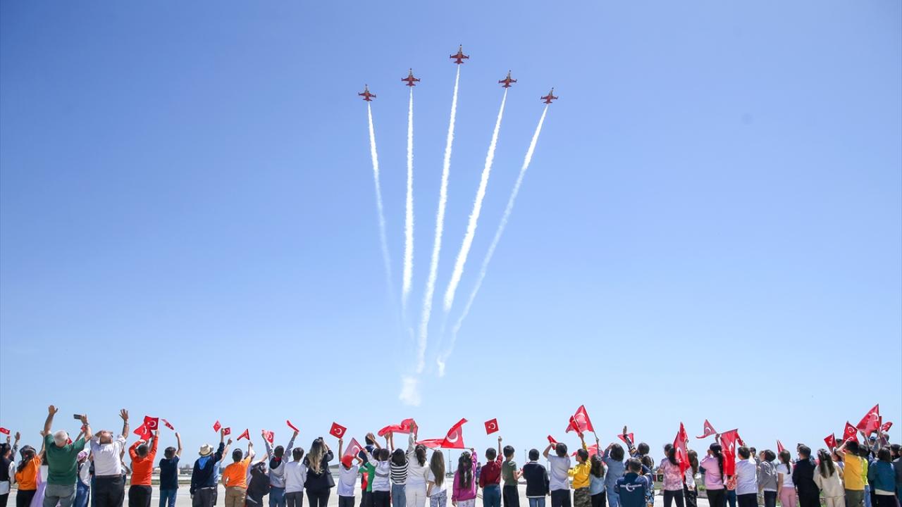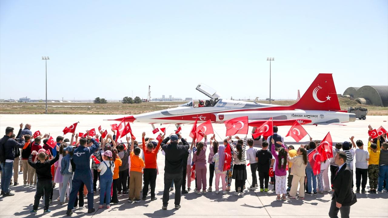 Konya'da 23 Nisan Ulusal Egemenlik ve Çocuk Bayramı dolayısıyla bazı öğrenciler, Türk Yıldızları filosunu ziyaret etti, pilotlarla tanışma ve Türk Yıldızları gösterisini izleme imkanı buldu.