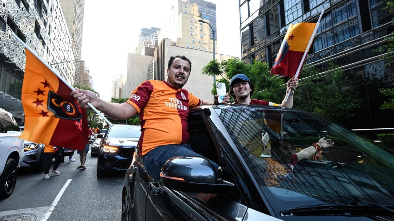 Galatasaray’ın Spor Toto Süper Lig'de şampiyonluğu garantilemesi, Amerika Birleşik Devletleri'nde de kutlandı. New York sokaklarında şampiyonluk turu atan Galatasaraylılar, Türkevi'ne Galatasaray bayrağı astı.