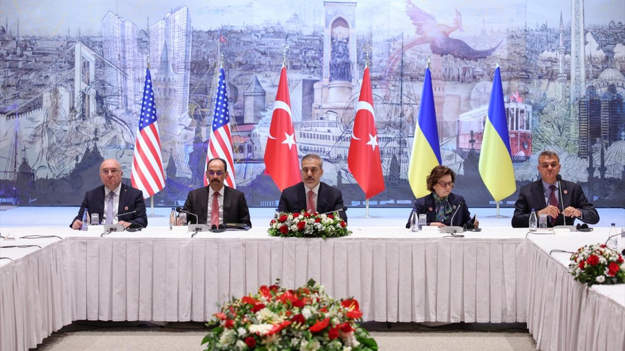 İstanbul'daki Cumhurbaşkanlığı Dolmabahçe Çalışma Ofisi'nde düzenlenen Türkiye-ABD-Ukrayna Üçlü Toplantısı Dışişleri Bakanı Hakan Fidan'ın başkanlığında başladı.