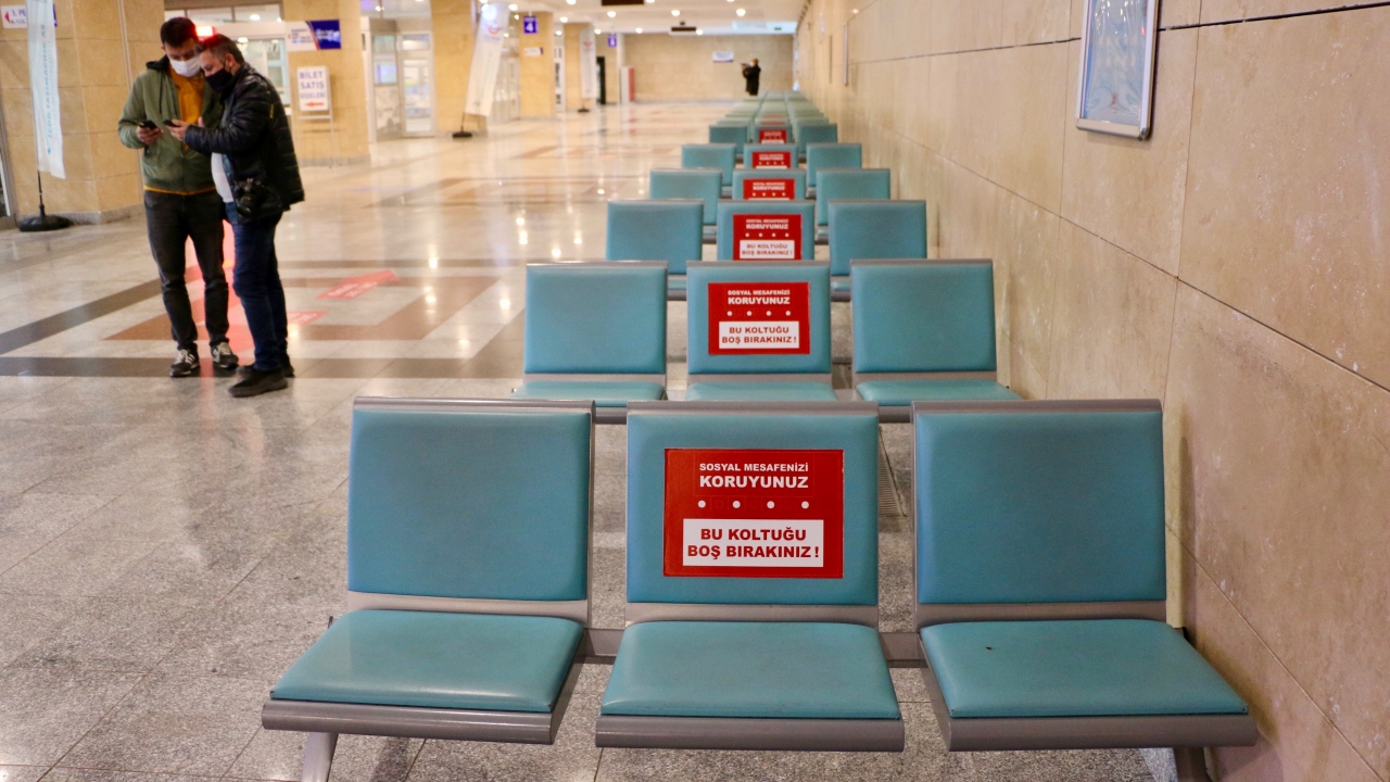 Bekleme alanlarında yolcular yan yana oturamıyor. Araya bir koltuk boşluk bırakılacak.