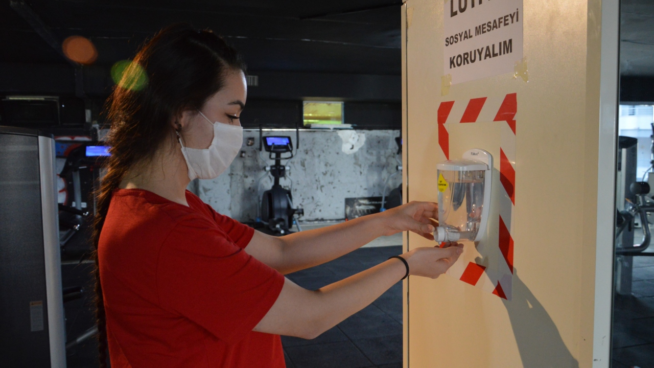 Spor salonlarının girişinde ve içeride el antiseptiği bulundurulacak.
