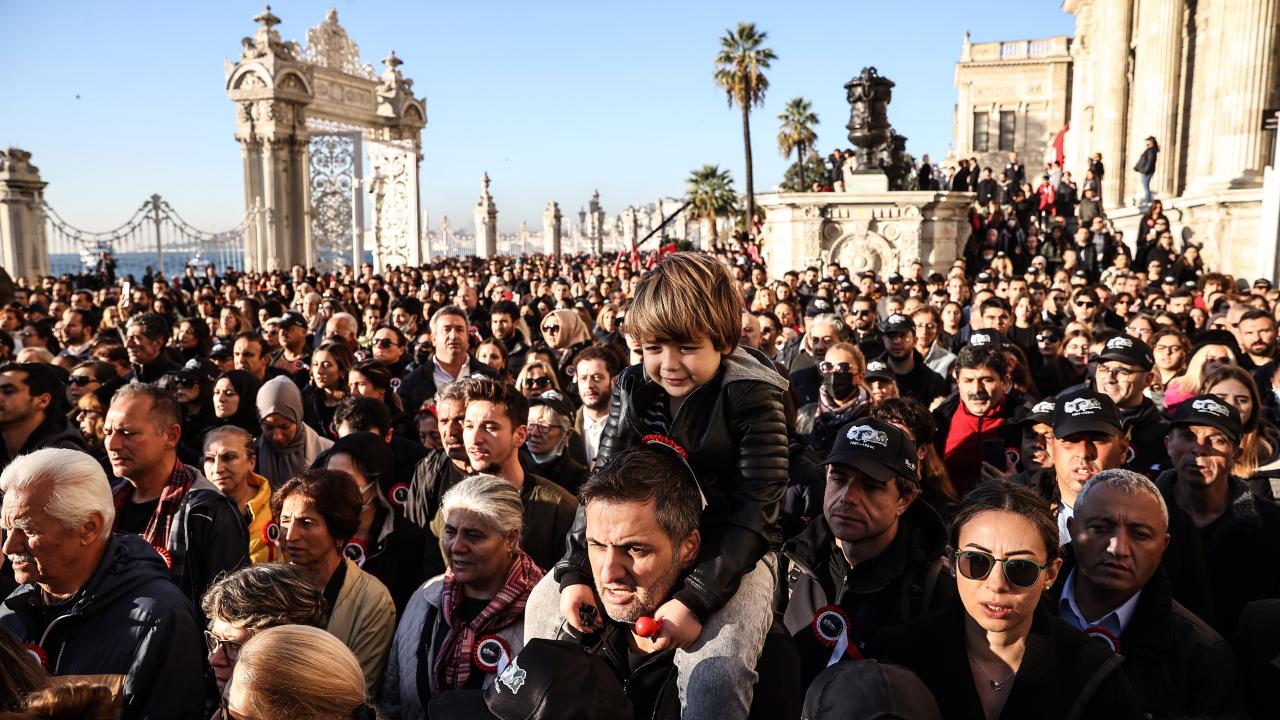 Türkiye Cumhuriyeti`nin kurucusu Büyük Önder Mustafa Kemal Atatürk`ün ebediyete intikalinin 84. yılında dalgıçlar, Dolmabahçe Sarayı önünde Atatürk`ü anmak için dalış gerçekleştirdi. Dalışı gerçekleştiren dalgıçlar, su altında açtıkları Atatürk posteriyle saat 09.05`te deniz yüzeyine çıkarak Ata`yı andı.