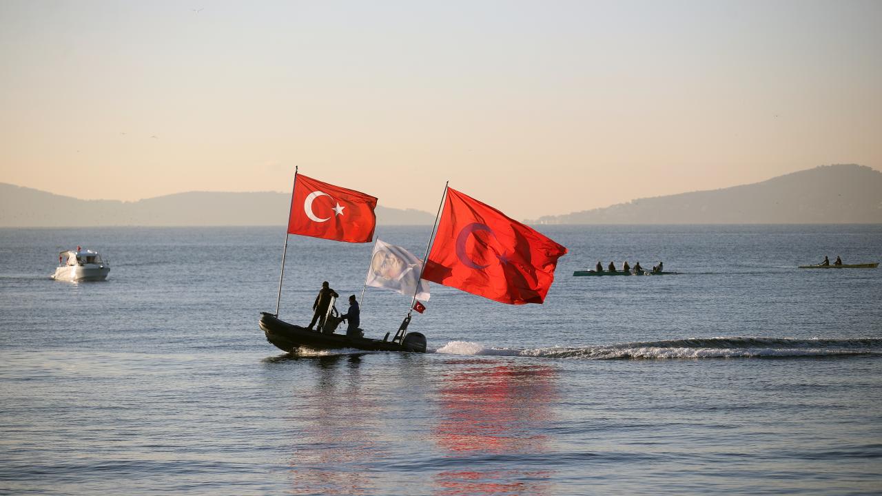 Kadıköy Bostancı Sahilinde balıkçı tekneleri ve botlar Türk bayrakları ile geçiş yaptı.