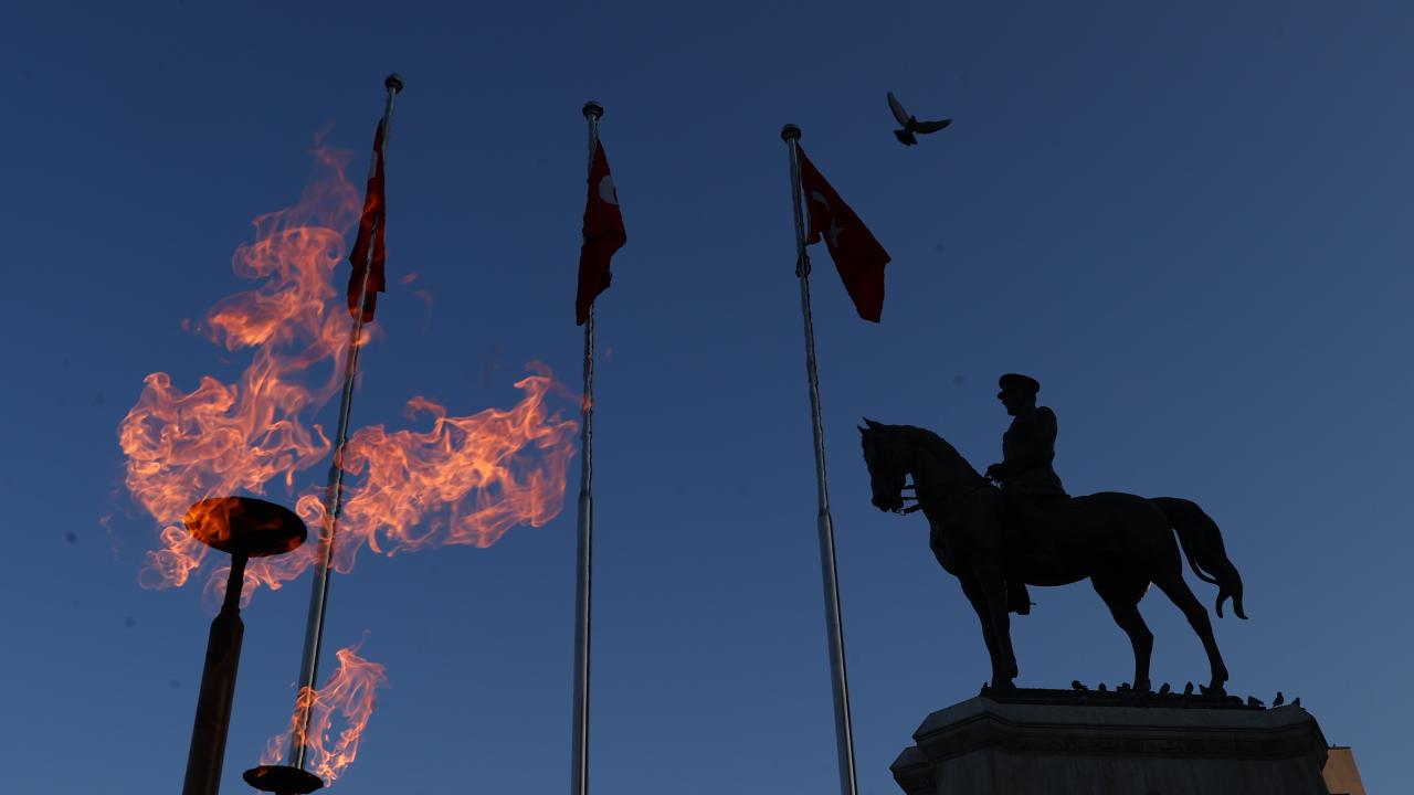 Ankara Ulus`taki Atatürk Heykeli önündeki meşalelerin yandığı gözlendi.