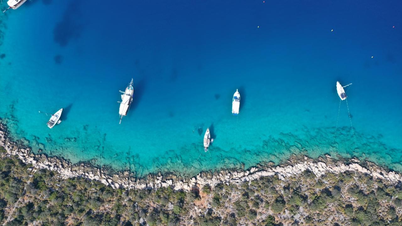 Antalya`da turkuaz rengiyle dikkati çeken Kaputaş`ın sergilediği görsel şölen, dron ile havadan görüntülendi. (Arşiv-11.02.2019)
