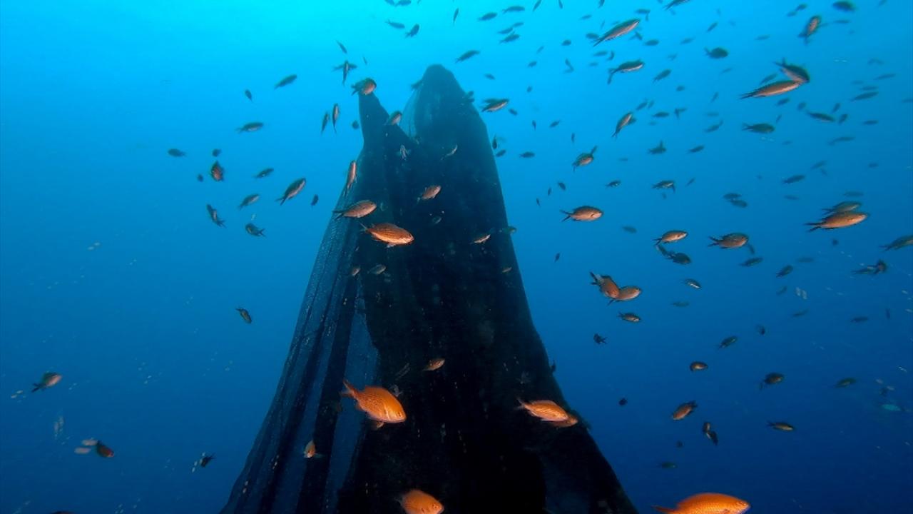 İzmir`in Karaburun ilçesinde, dalış turizmi için yapay resif uygulamasıyla batırılan "9 Eylül Vapuru" dev hayalet ağ ile kaplandı. Hayalet ağ, gönüllü dalgıçlar ve deniz polisi tarafından yaklaşık 4 saatlik çalışma sonucu temizlendi. (Arşiv-20.11.2021)