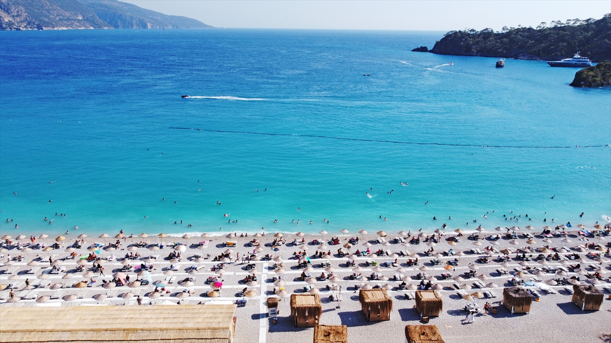 Turkuaz rengi deniziyle ünlü Ölüdeniz, temiz sahilleri ve doğal güzellikleriyle dünyanın sayılı turizm merkezlerinden biri olarak dikkati çekiyor. (Arşiv-09.07.2022)