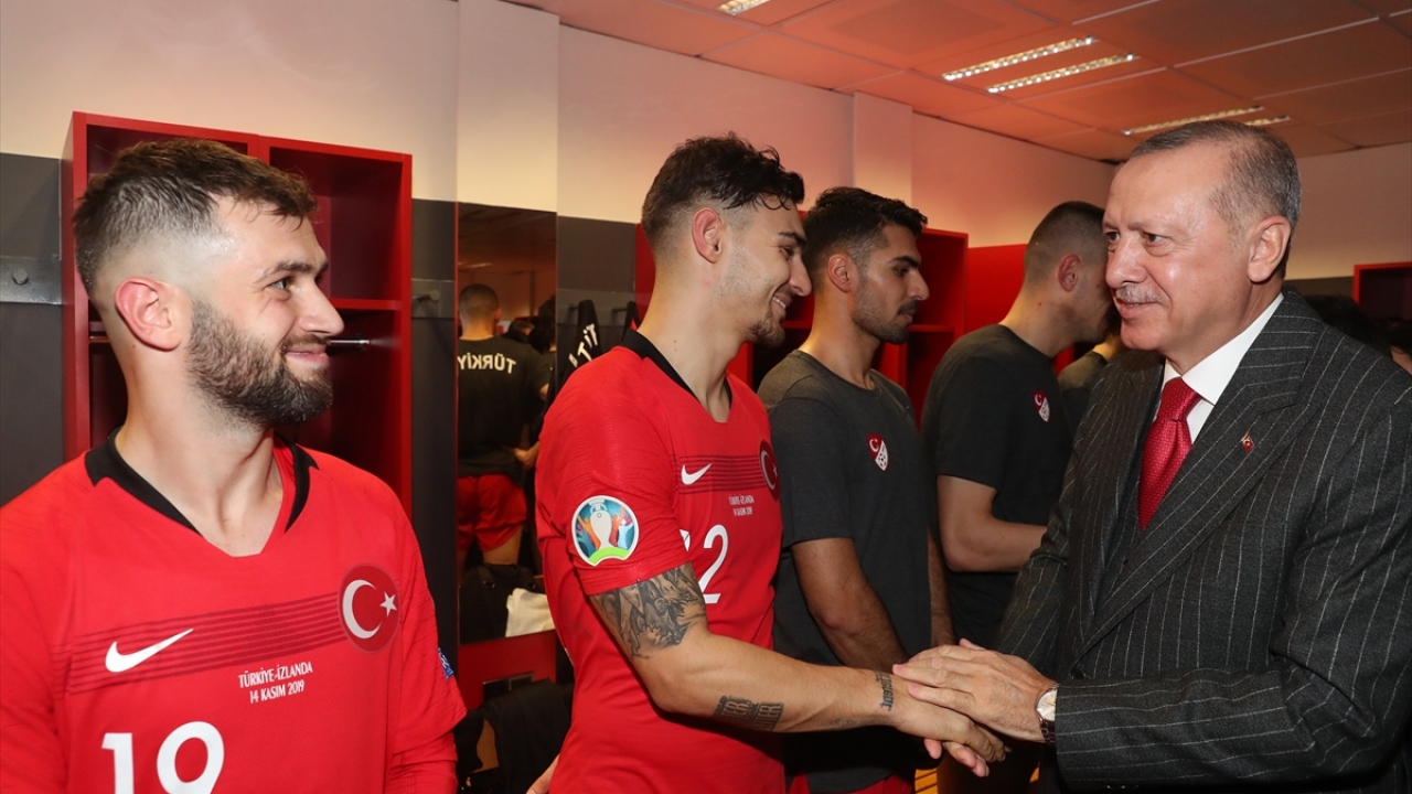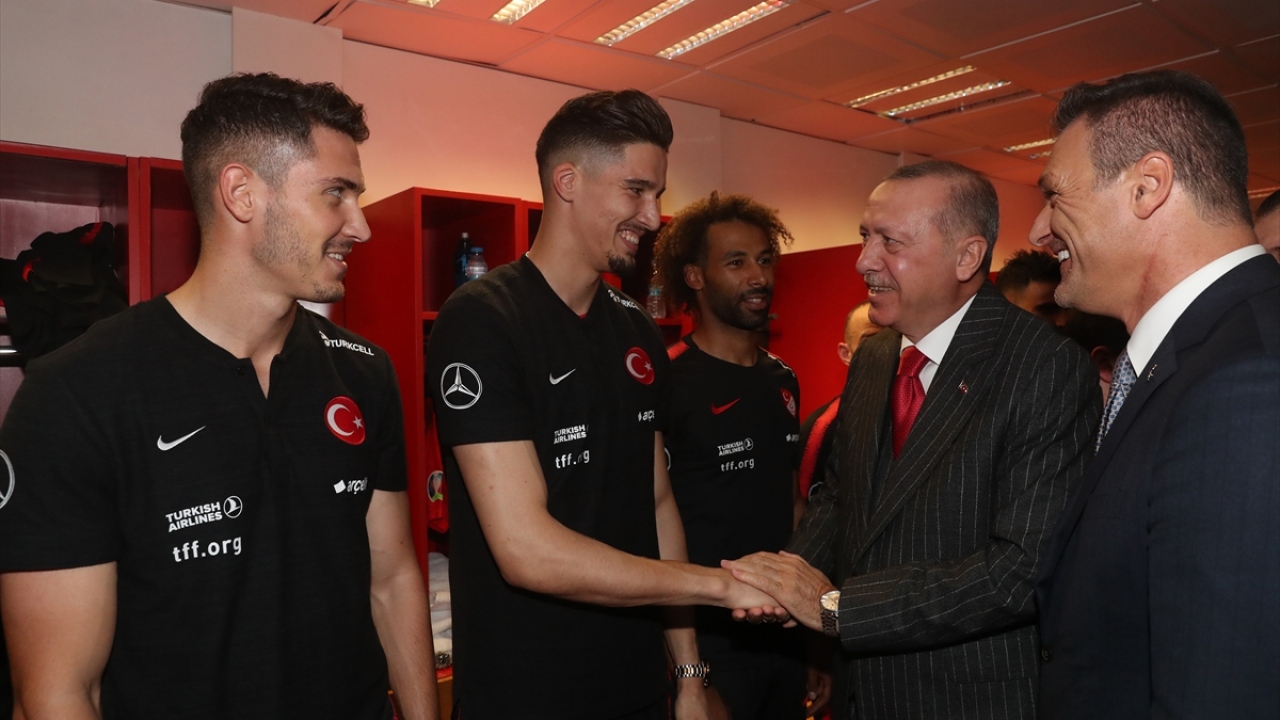 Futbolcuları tek tek tebrik eden, teknik direktör Şenol Güneş ve ekibini kutlayan Cumhurbaşkanı Erdoğan`a, Gençlik ve Spor Bakanı Mehmet Muharrem Kasapoğlu, Türkiye Futbol Federasyonu (TFF) Başkanı Nihat Özdemir ve AK Parti İzmir Milletvekili Alpay Özalan da eşlik etti.
