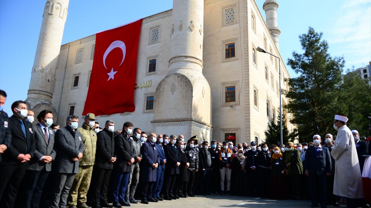 Şehidin cenazesi daha sonra tören mangasının omuzunda merkez Artuklu ilçesindeki Şakir Nuhoğlu Camisi`ne getirilerek, katafalka konuldu, özgeçmişi okundu.