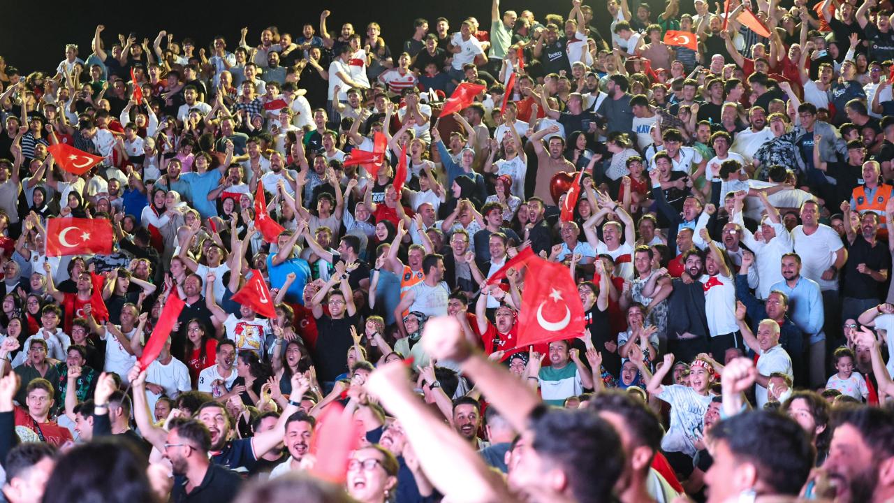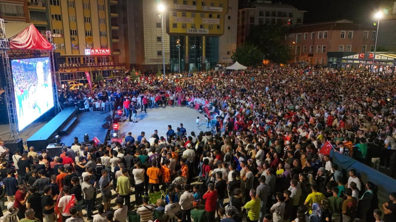 A Milli Futbol Takımı’nın bu akşam saat 22:00 ‘da oynanacak olan EURO 2024 Avrupa Futbol Şampiyonası’nda Hollanda ile kıyasıya mücadele edeceği maç yurdun birçok ilinde meydanlarda kurulan dev ekranda izlendi.