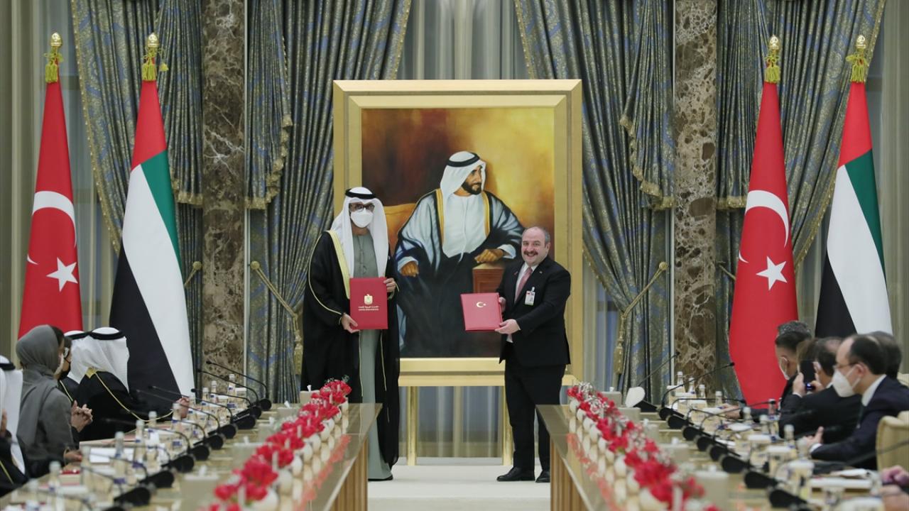 Türkiye Cumhuriyeti Sanayi ve Teknoloji Bakanlığı ile BAE Sanayi ve İleri Teknoloji Bakanlığı arasındaki Sanayi ve İleri Teknolojiler Alanında İşbirliği Mutabakat Muhtırası, Sanayi ve Teknoloji Bakanı Mustafa Varank ve BAE Sanayi ve İleri Teknoloji Bakanı Sultan bin Ahmed Al Jaber tarafından imzalandı.